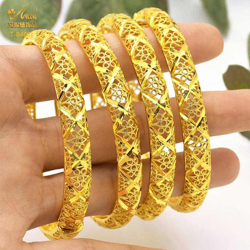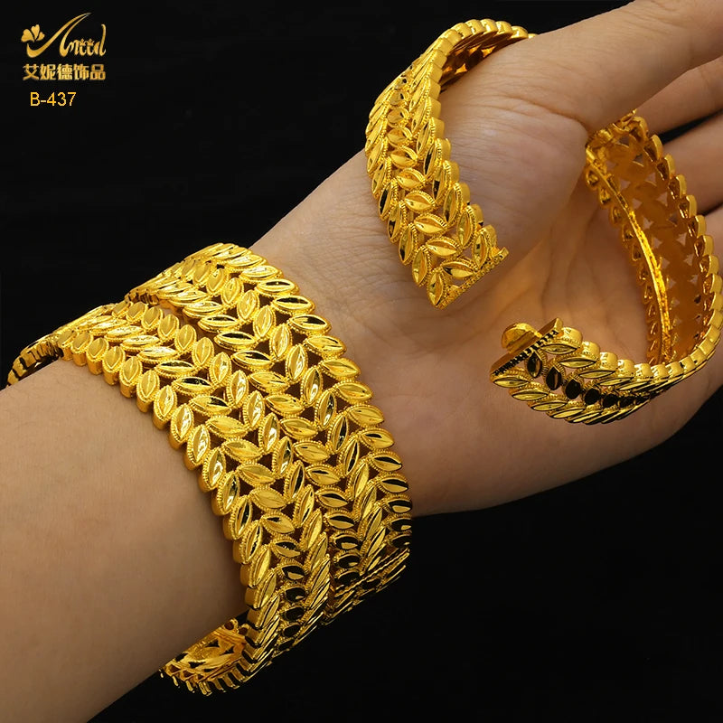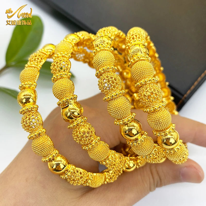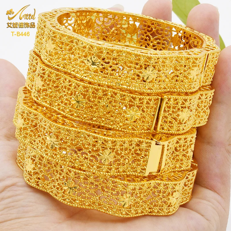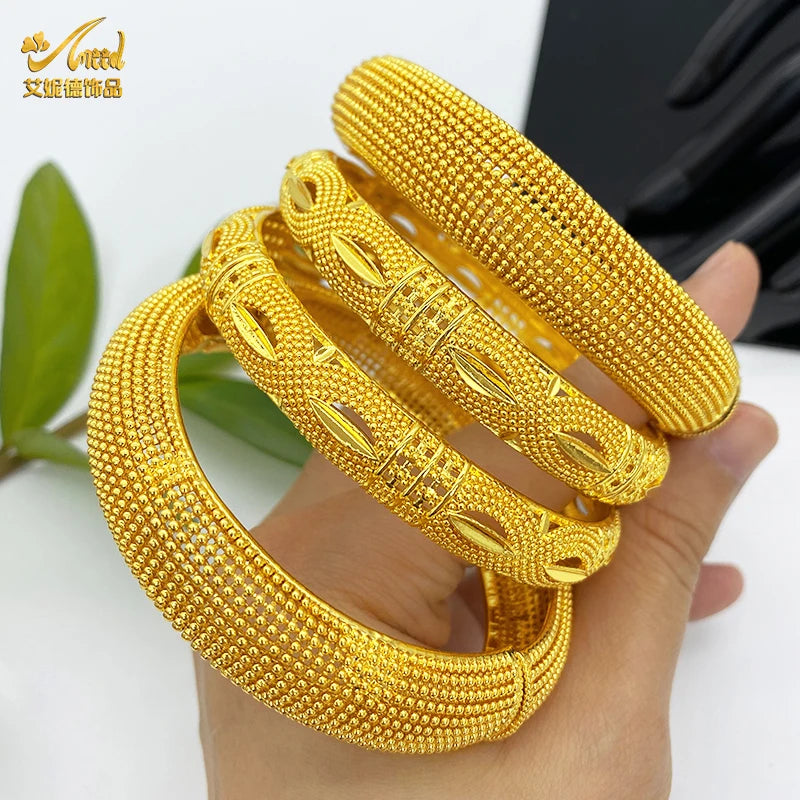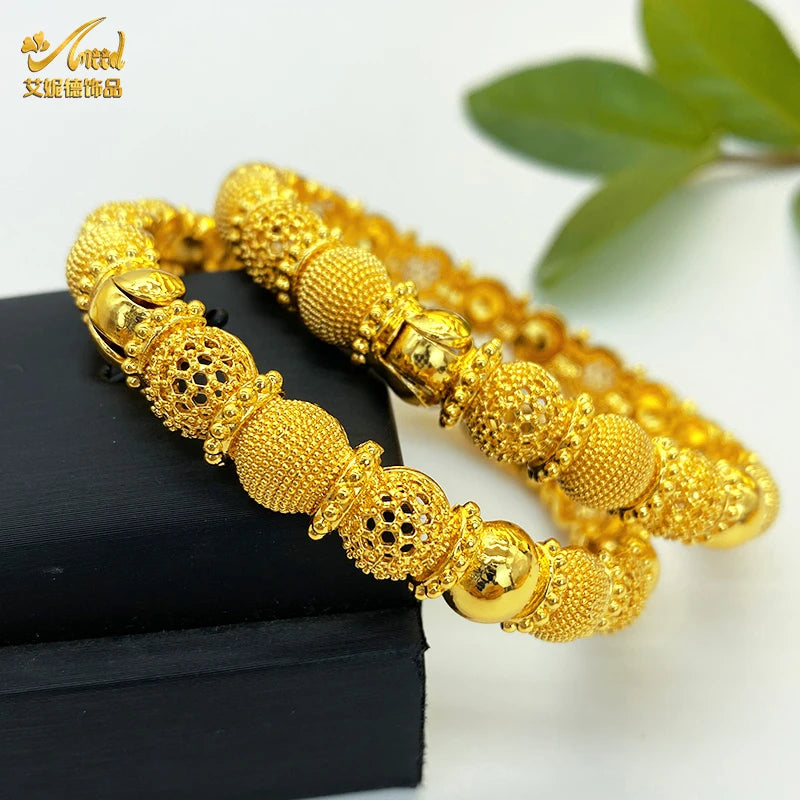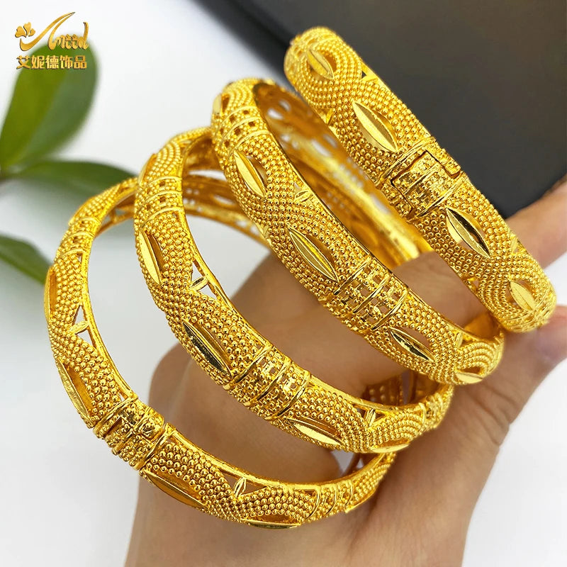ANIID New Luxury Dubai Gold Plated Bangles For Women Arabic Bridal Charm Bracelet Nigerian Wedding Gift African Jewelry Party
