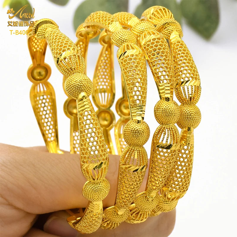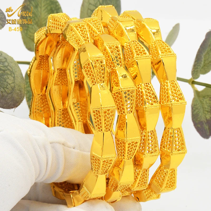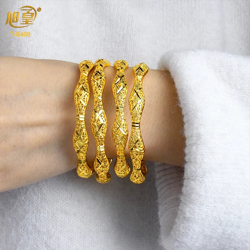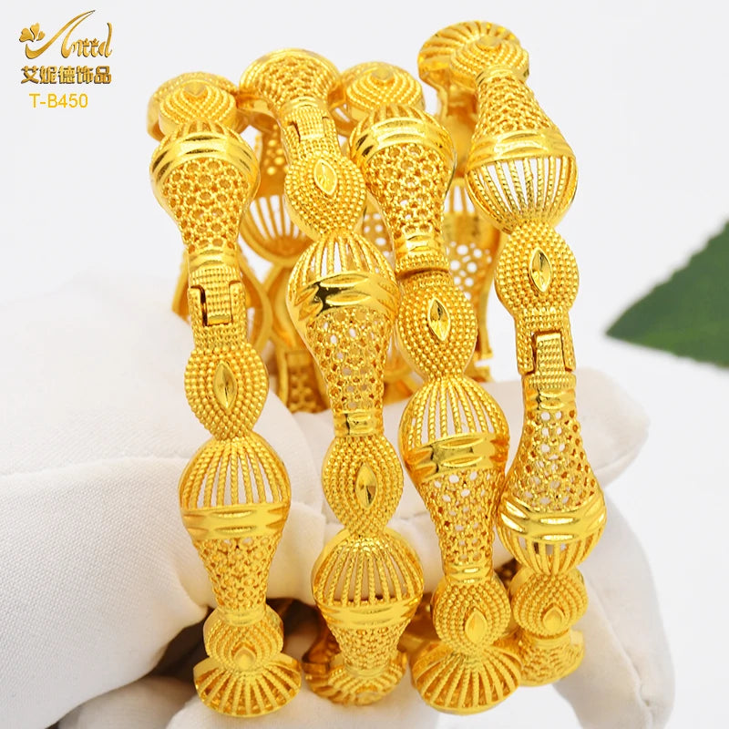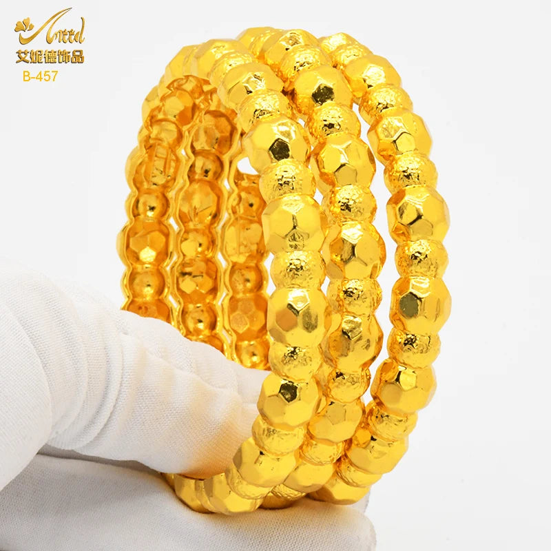 Luxury Gold Plated Bangles Arabic Bridal Charm Bracelet Nigerian Wedding African Jewellery