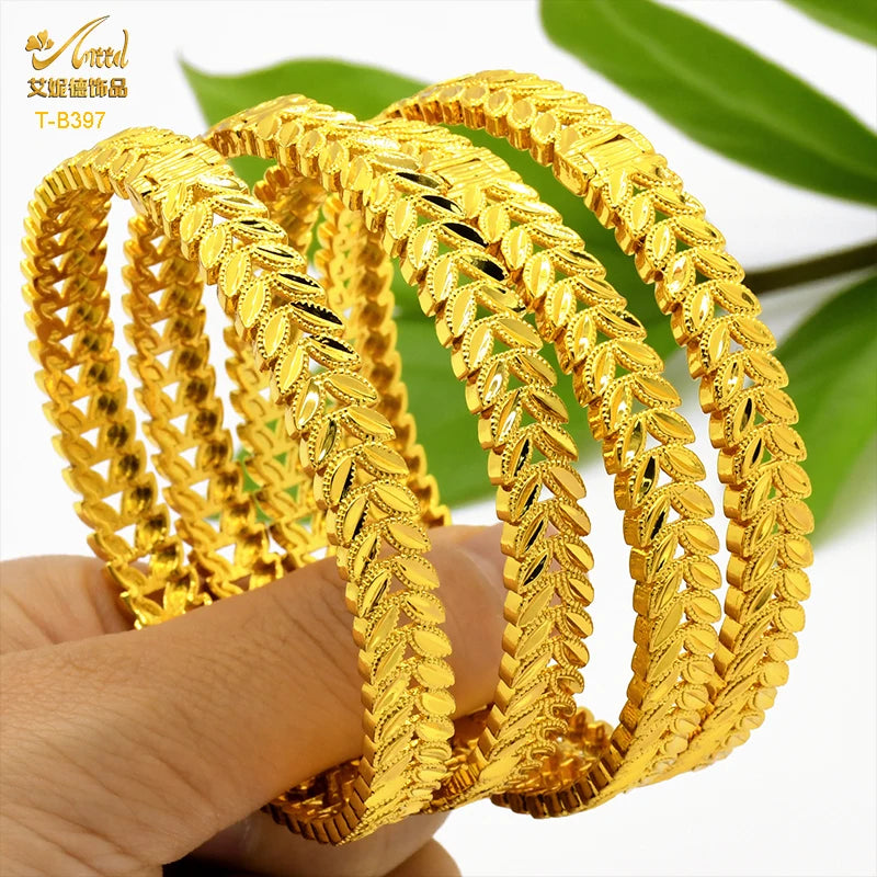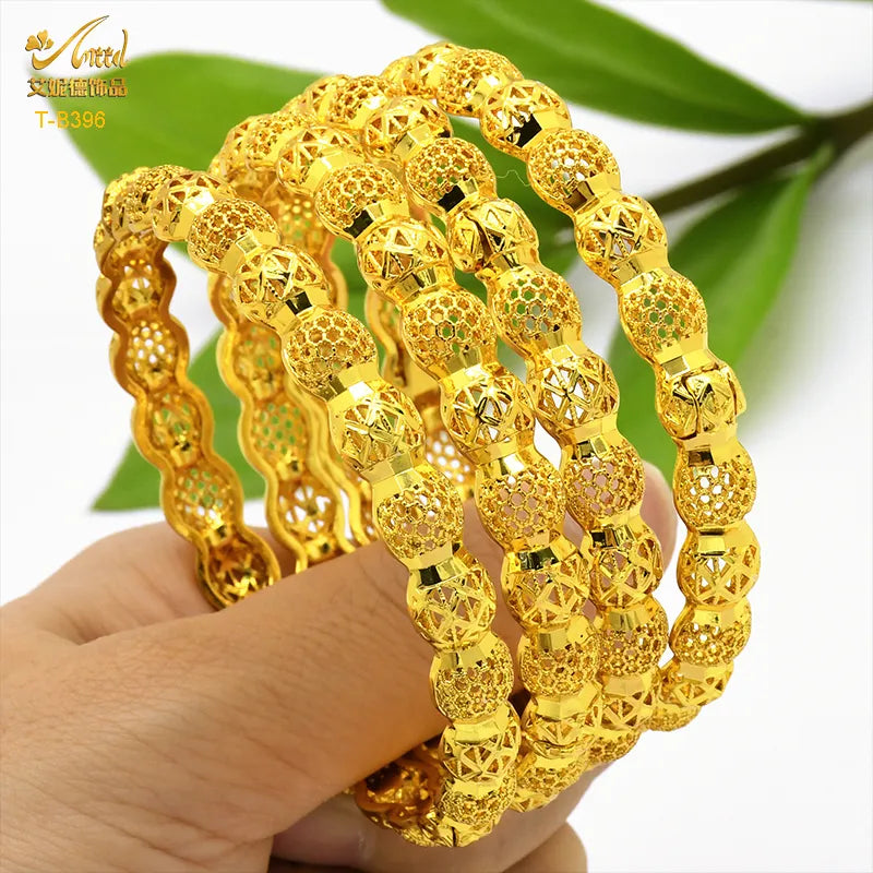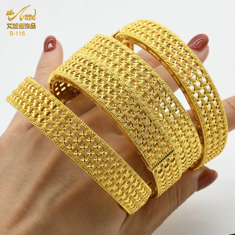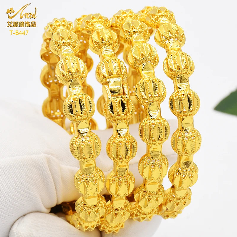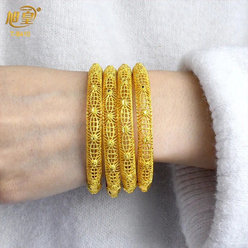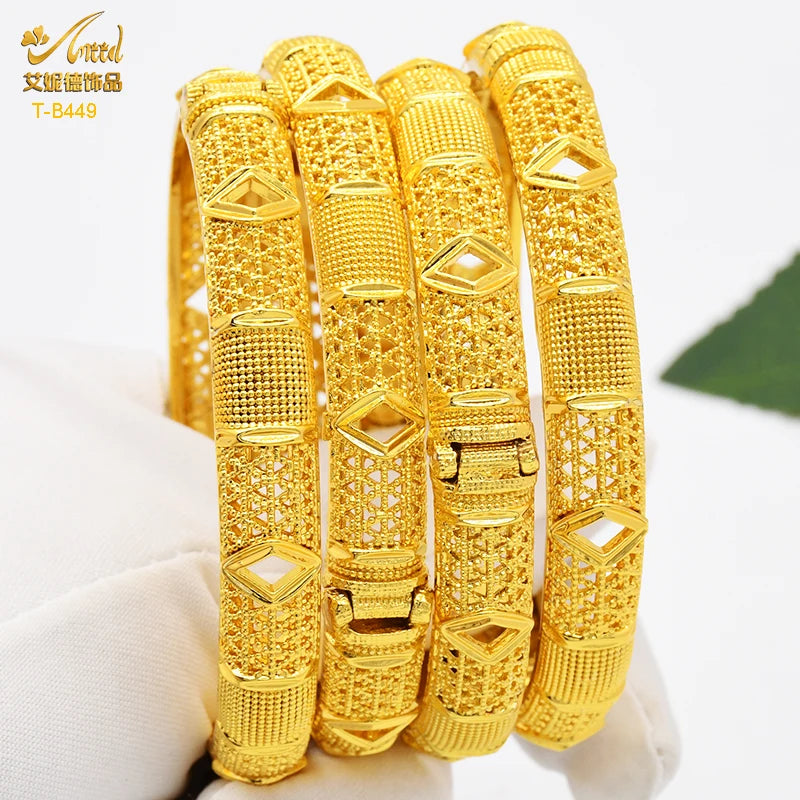Luxury Gold Plated Bangles Arabic Bridal Charm Bracelet Nigerian Wedding African Jewellery