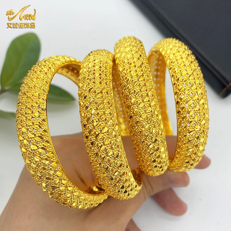 Luxury Dubai Gold Plated Bangles For Women Arabic Bridal Charm Bracelet Nigerian Wedding Gift African Jewelry Party