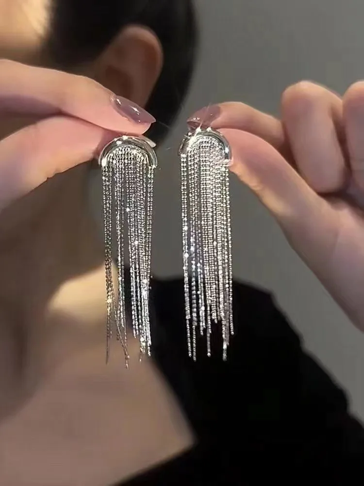 ANKA new S925 sterling silver full silver long tassel earrings cold wind light luxury high-end hundred with ladies earrings