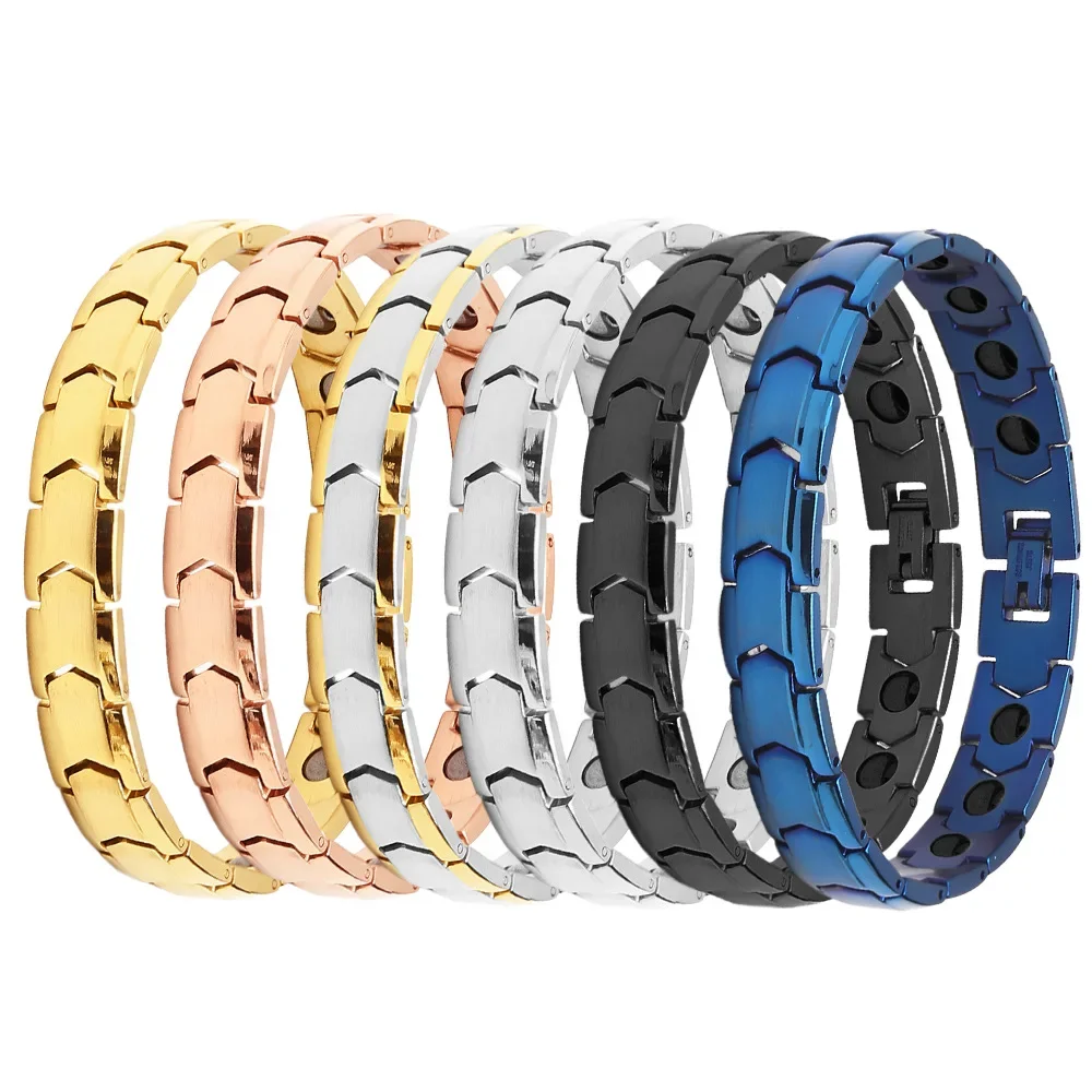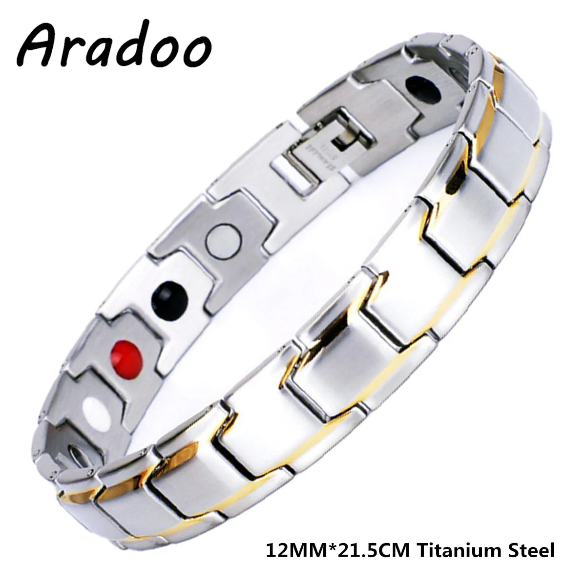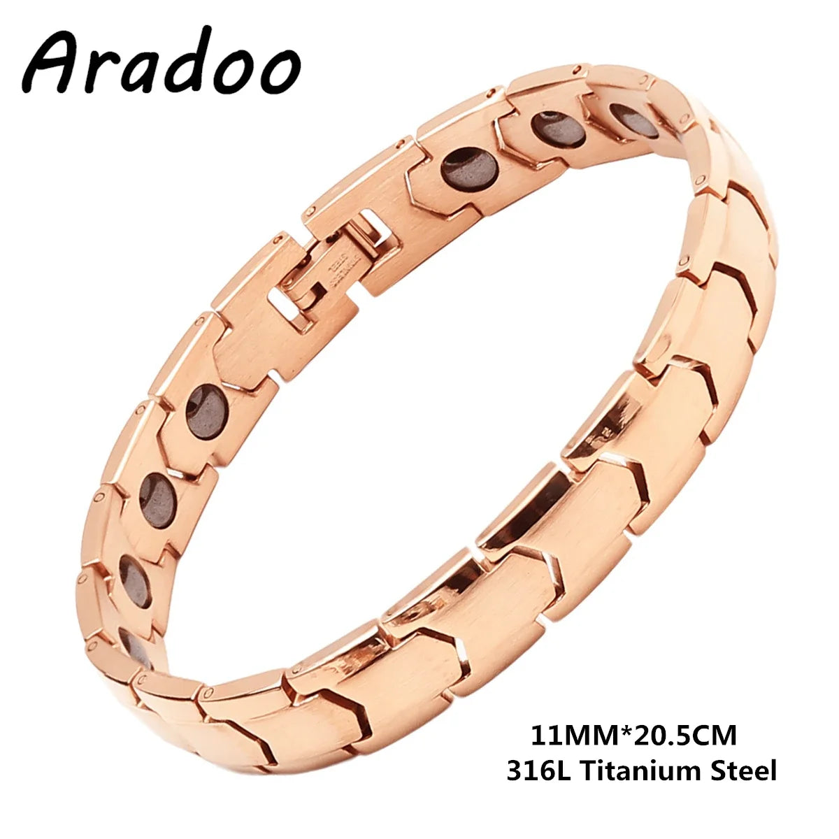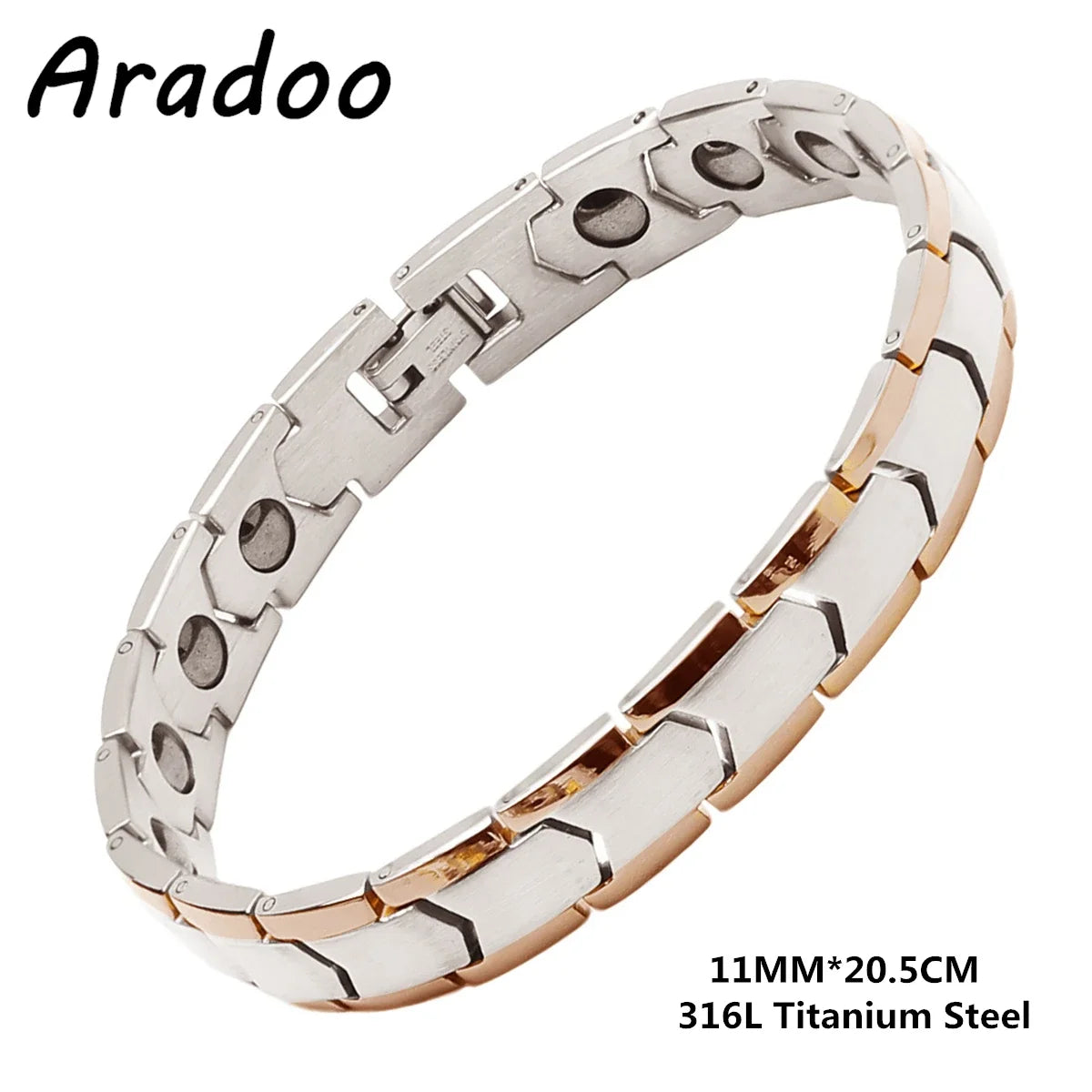 ARADOO Titanium Steel Hematite Therapy Bracelets Men's Arrow Stainless Steel Magnetic Link Bracelet