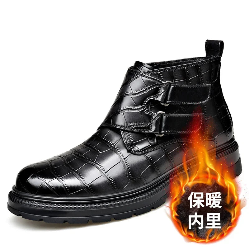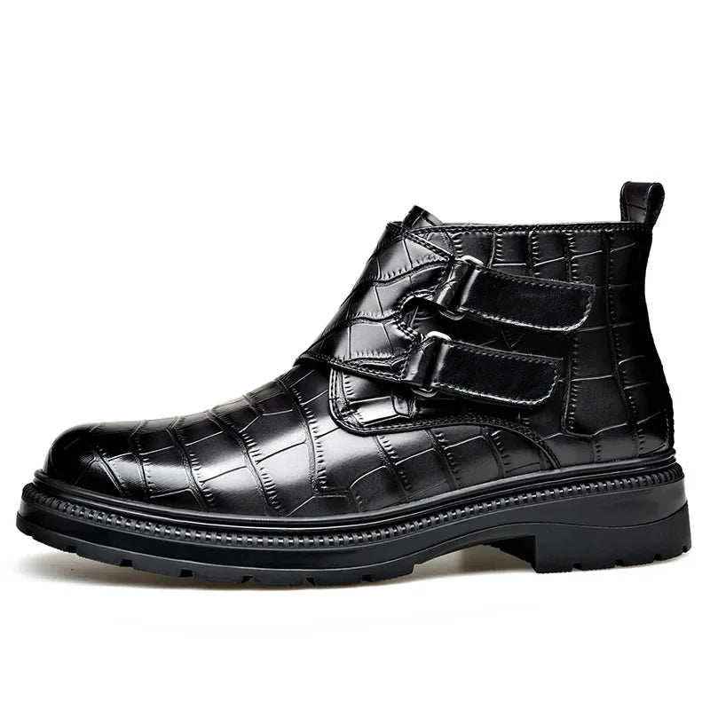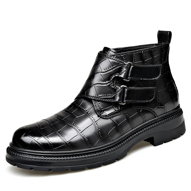 Autumn Winter Buckle Designer Ankle Boots for Men Stone Pattern Leather Shoes