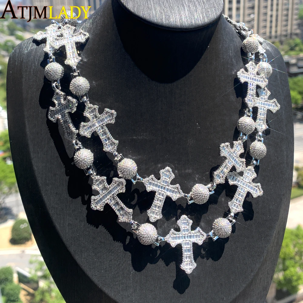 New Iced Out Ball Infinity Cross Necklace for Men Women Bling Cubic Zirconia Cuban Chain Cross Ring Bracelet Hip Hop Jewelry Set