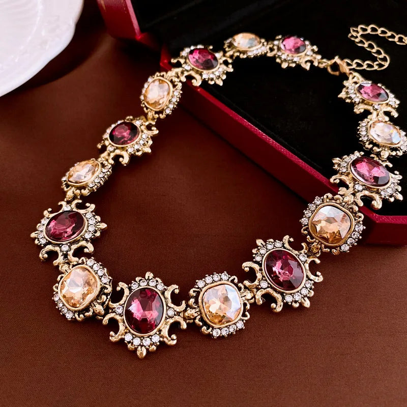 FYUAN Vintage Baroque Style Necklace Earrings For Women Brown Crystal Earrings Banquet Weddings Jewelry Sets