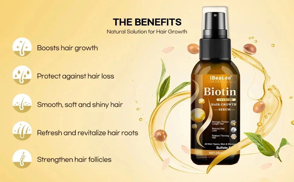 ▶iBeaLee biotin hair growth spray treat your hair with rich nourishment, strengthen the nutrition of hair root, accelerate hair growth, prevent baldness effectively and cure scalp!