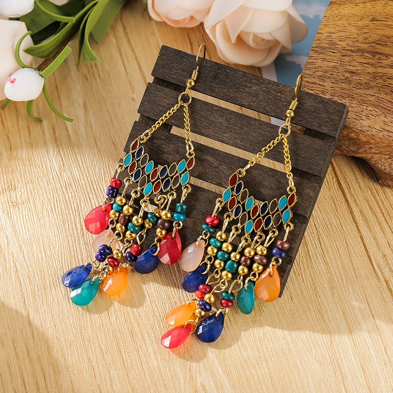 Bohemian Water Drop Tassel Earrings For Women Colourful Beads Dangle Ethnic Style Earring Female Fashion Jewellery