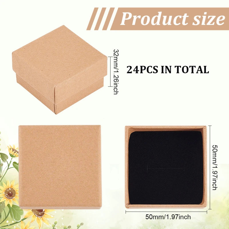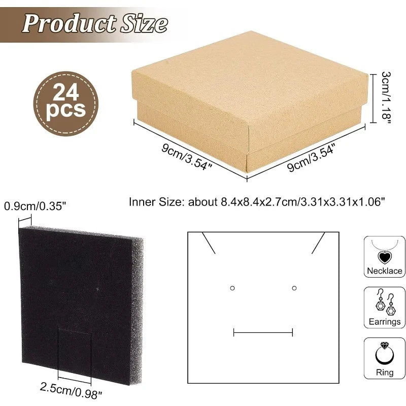 24 Pcs Cardboard Jewelry Boxes 3.54×3.54x1.18 Square Cardboard Box Paper Kraft Paper Gift Packaging Box for Christmas