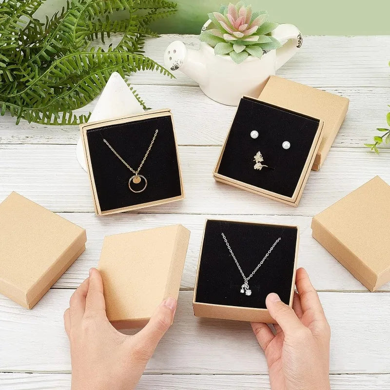Cardboard Jewelry Boxes 3.54×3.54x1.18 Square Cardboard Box Paper Kraft Paper Gift Packaging Box for Christmas