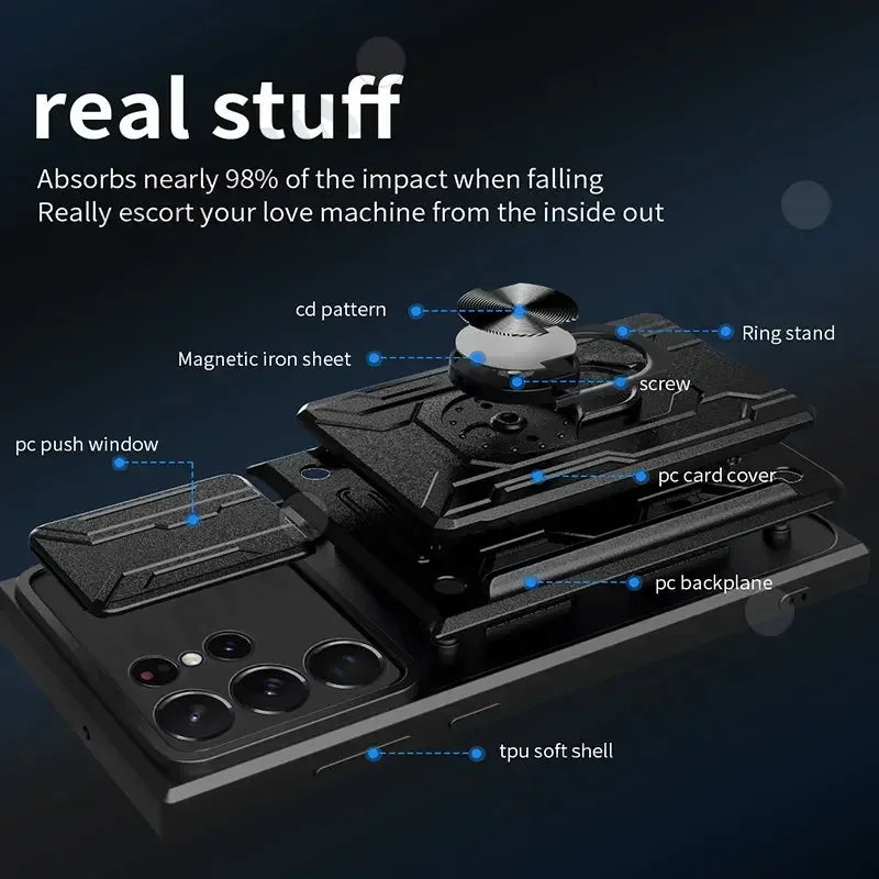 Case For Samsung S25 Ultra Slide Stand Ring Camera Military Grade Card Slot Cover