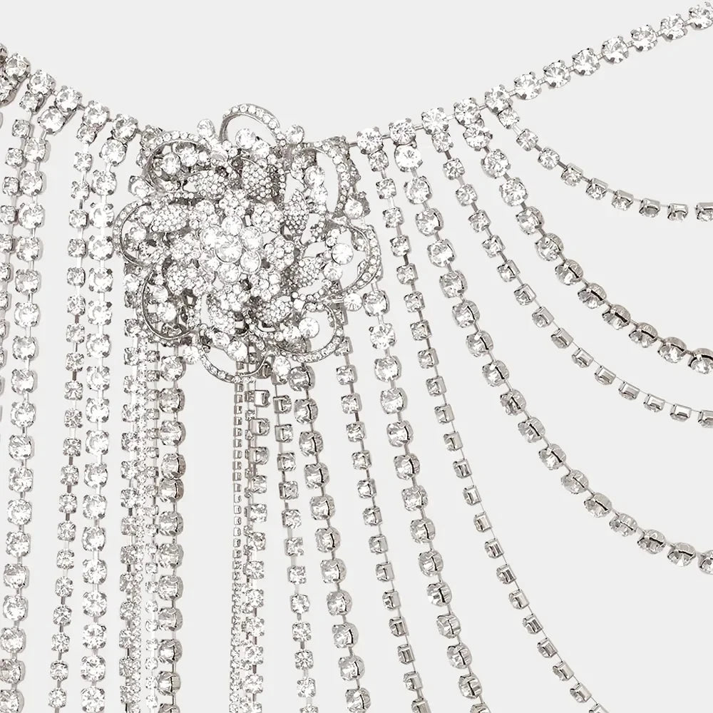 Catwalk Style Flower Tassel Skirt Fringe Rhinestone Women Dance Beach Sexy Multi Layer Body Chain Jewelry Nightclub Clothing