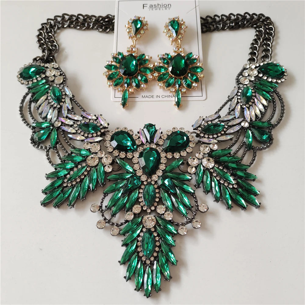 Colorful Acrylic Leaf Indian Statement Crystal Rhinestone Large Collar Choker Necklace Earrings Jewelry Sets 2024