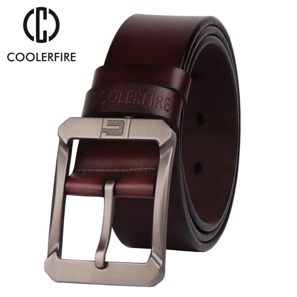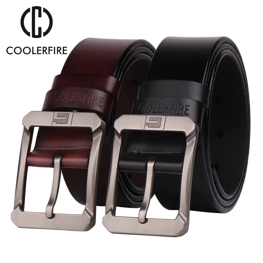 Coolerfire genuine leather belts male pin buckle jeans cowboy Mens Belt Luxury Designer High Quality Leather belt