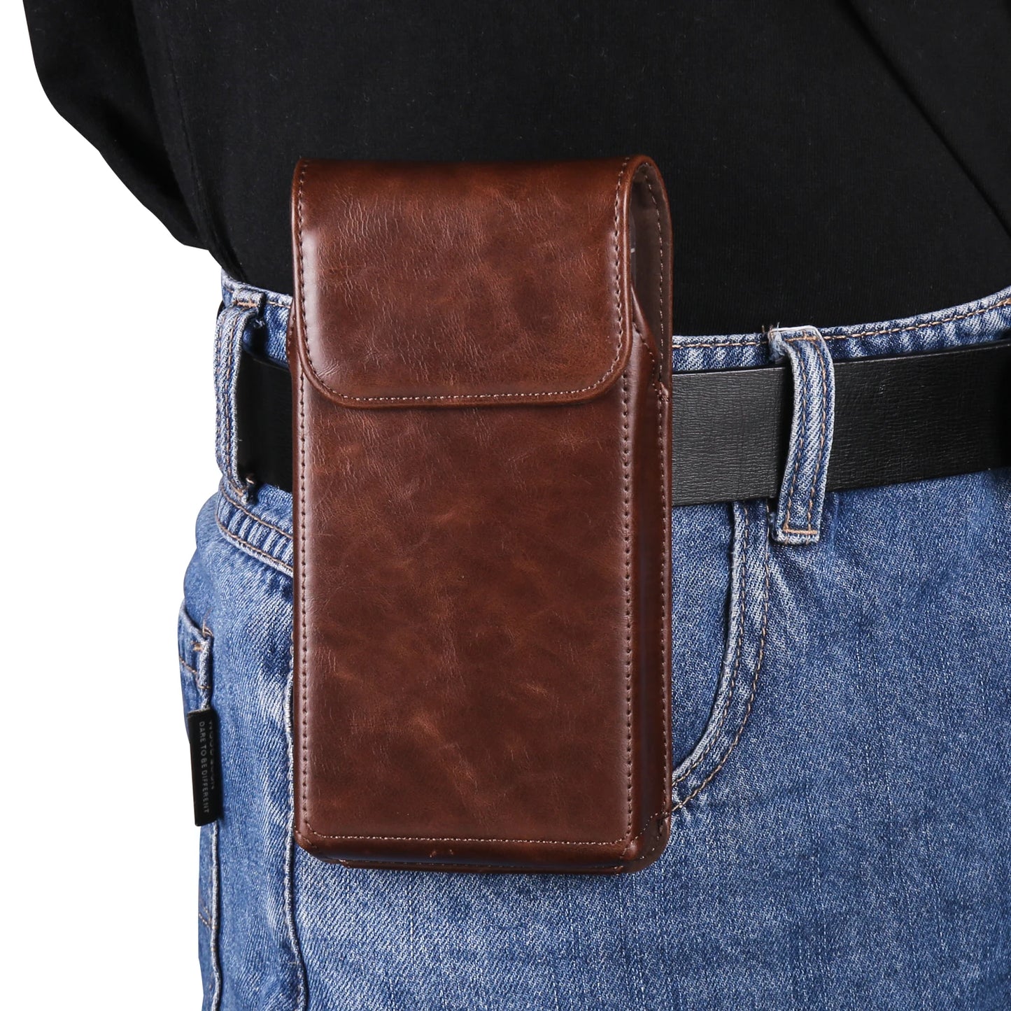 Luxury Cow Leather Belt Clip Case Men Waist Bag Vertical