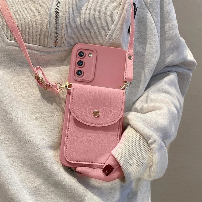 Crossbody Card Slot Bag Holder Case For Samsung Galaxy S24 S23 S22 S20 S21 Plus Ultra Fe Cord Silicone Cover