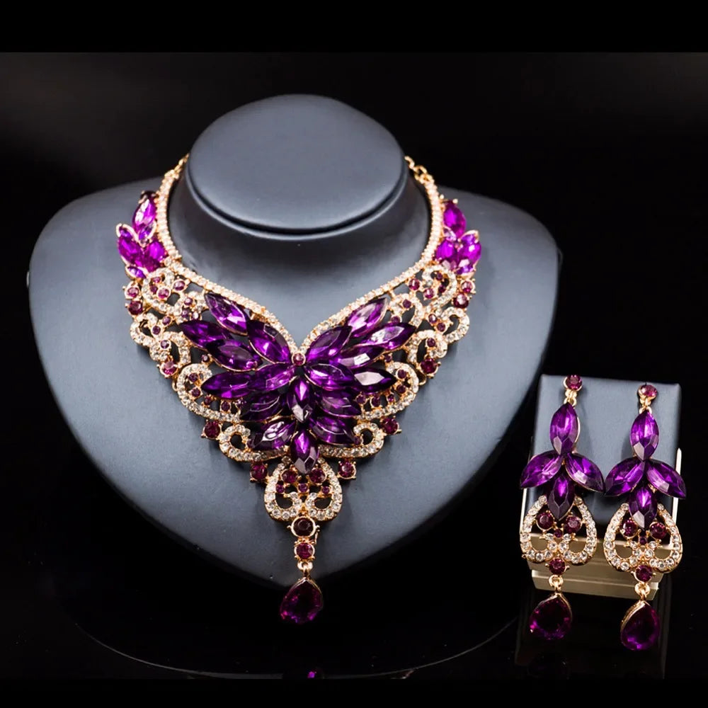 crystal jewellery Flower Statement Necklace earrings For Nigerian African Women