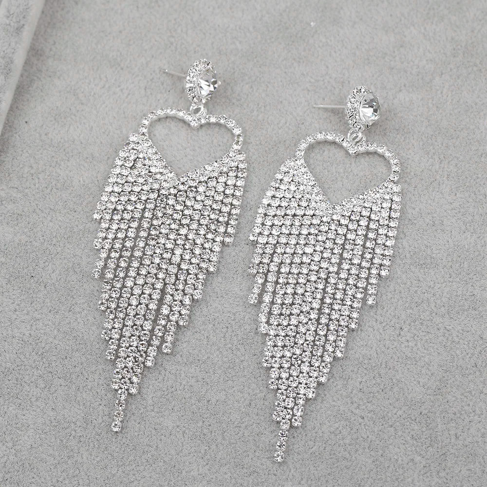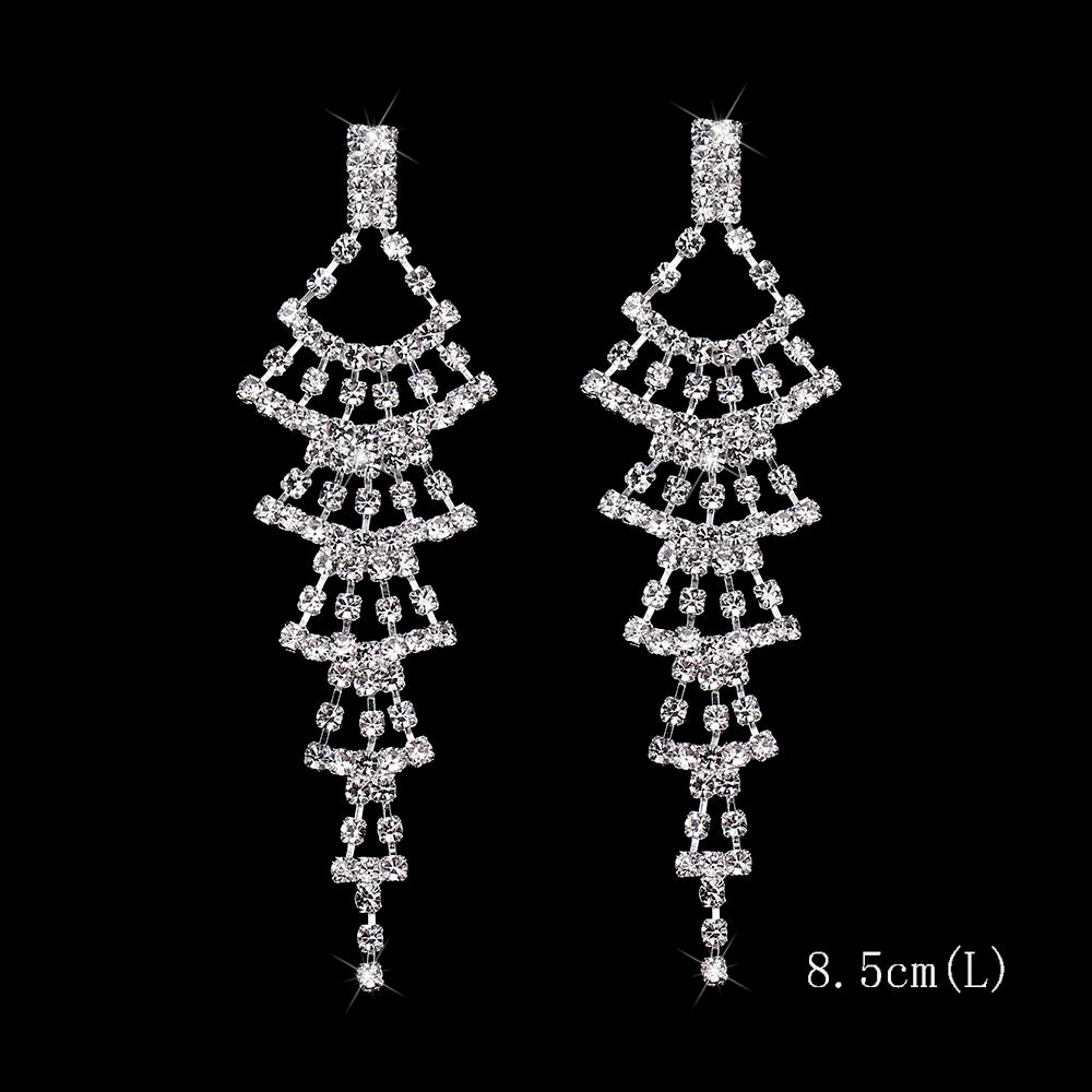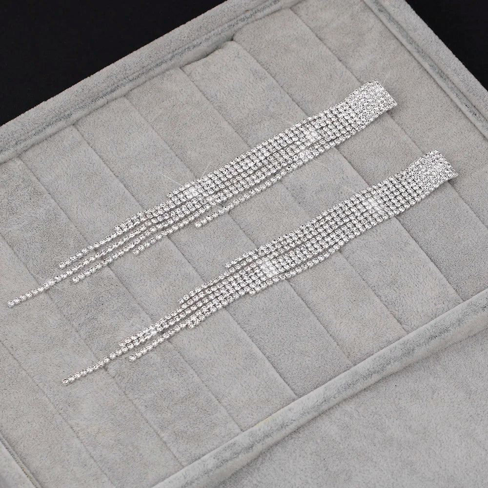 Crystal Long Tassel Earrings Bridal Dangling Drop Earrings Wedding Jewellery