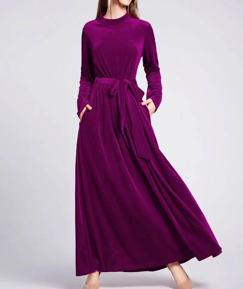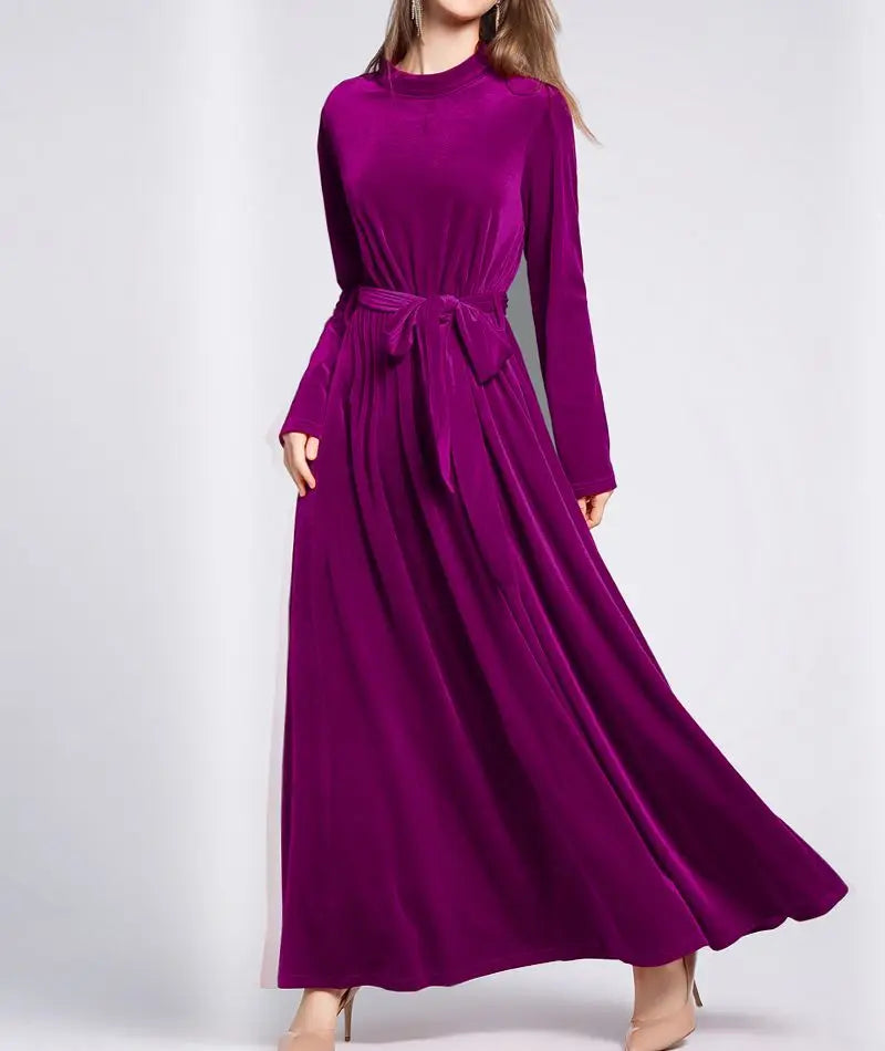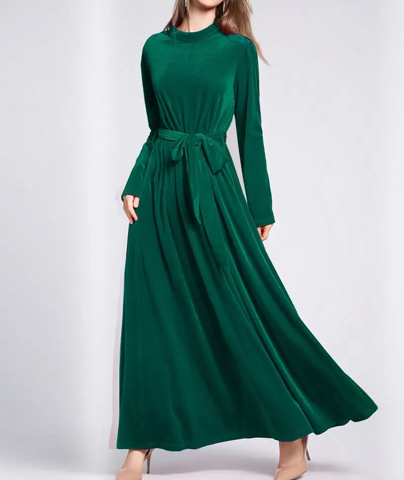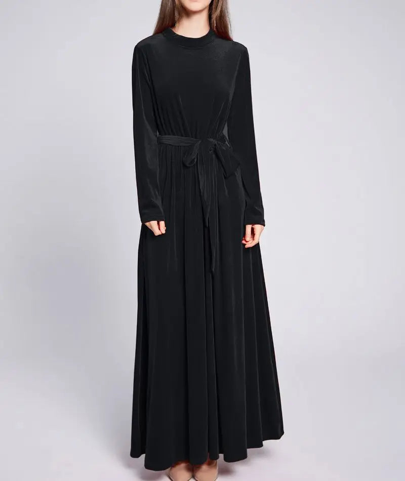 Dresses Women 2022 Autumn Winter Evening Party Prom Fashion Muslim Abaya Velvet Stretch Maxi Dress With Belt Vestidos 드레스 فستان