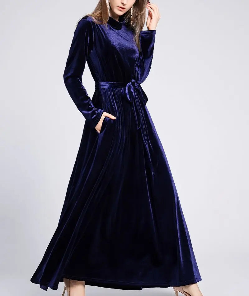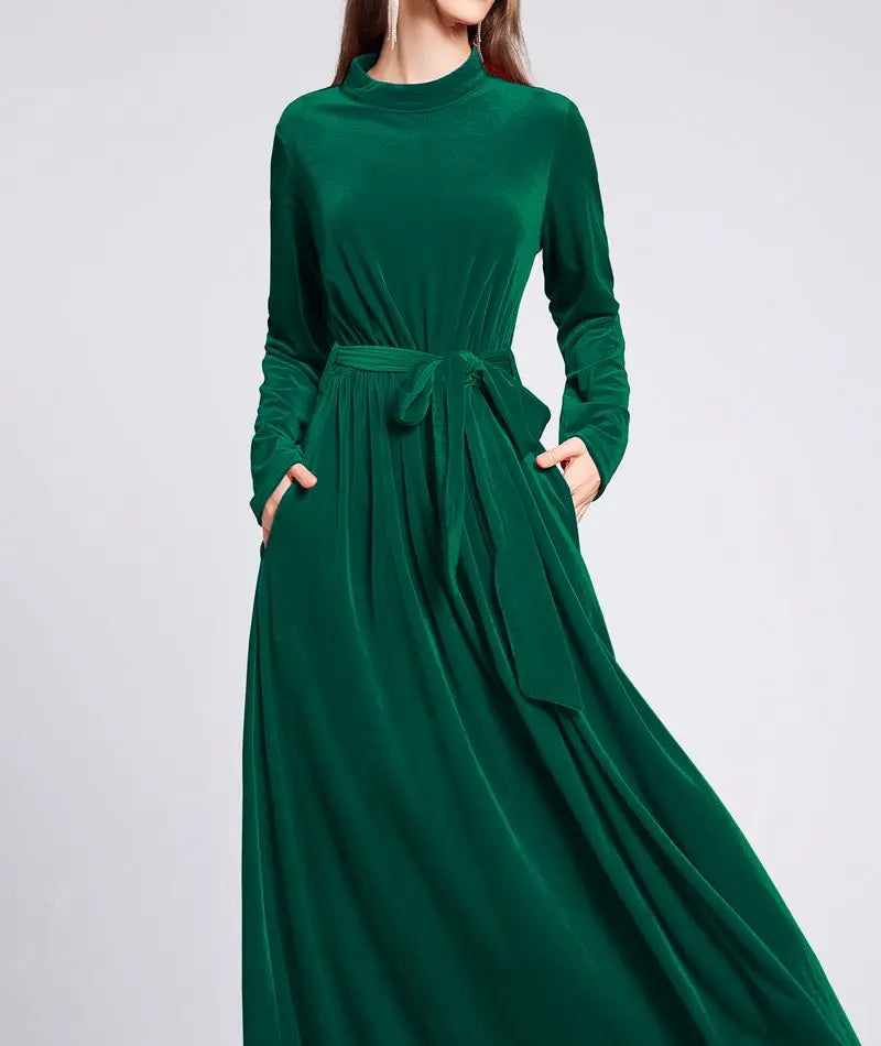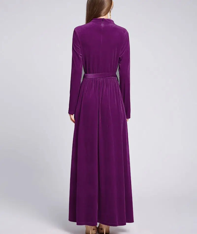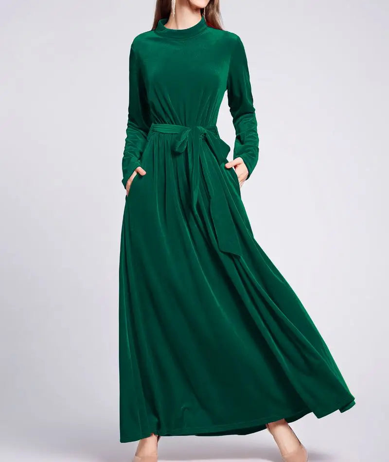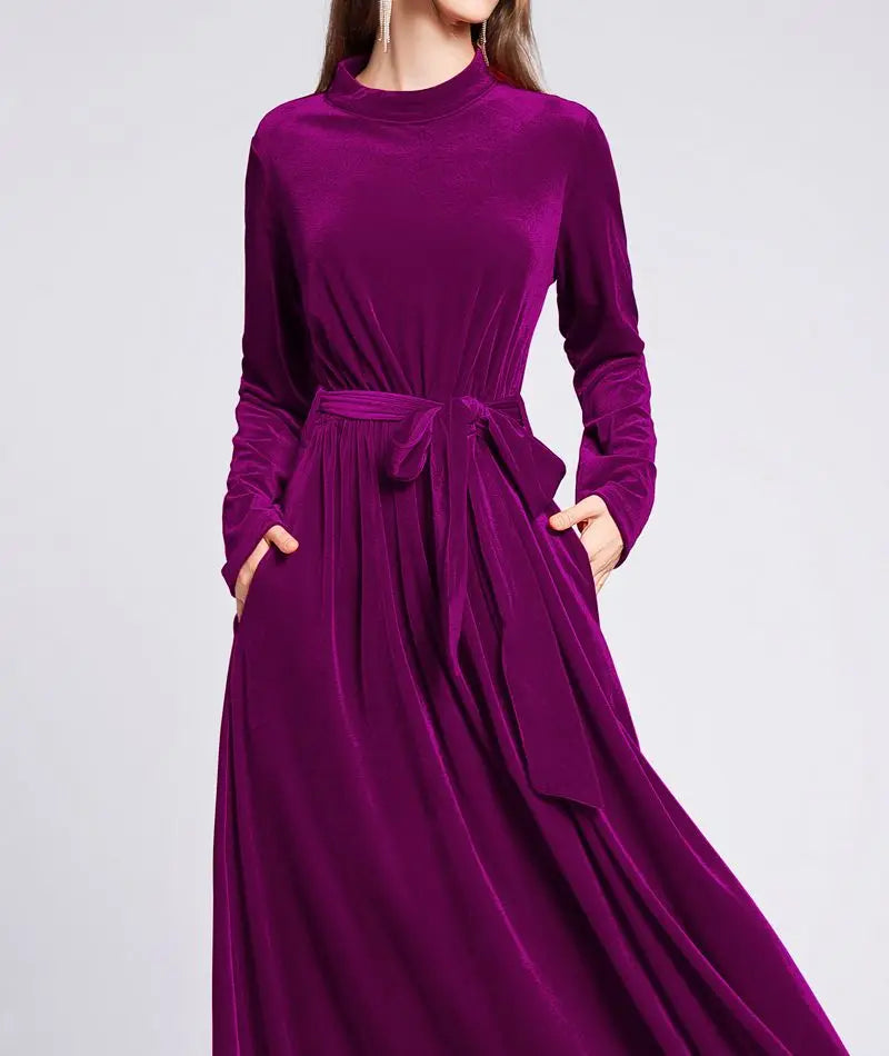 Dresses Women 2022 Autumn Winter Evening Party Prom Fashion Muslim Abaya Velvet Stretch Maxi Dress With Belt Vestidos 드레스 فستان