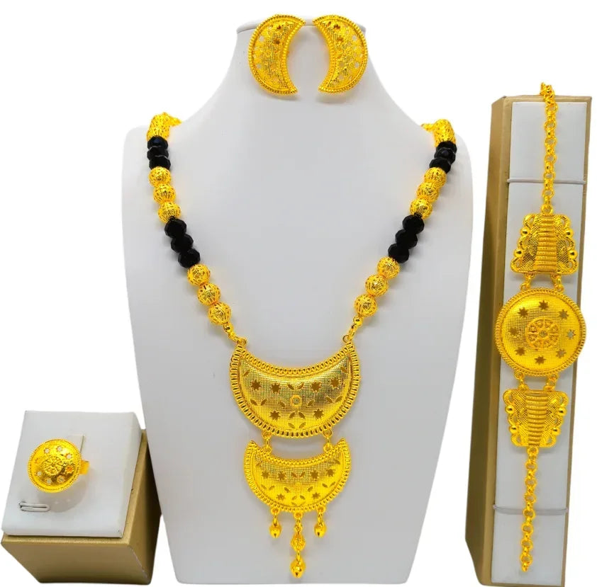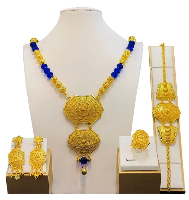 Dubai Jewelry Set For Women Necklace Earrings Indian Thailand Two Piece Set Gold Color