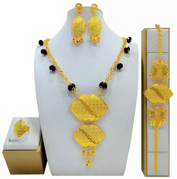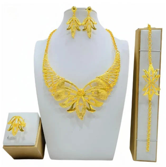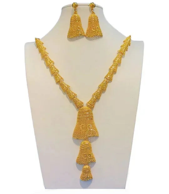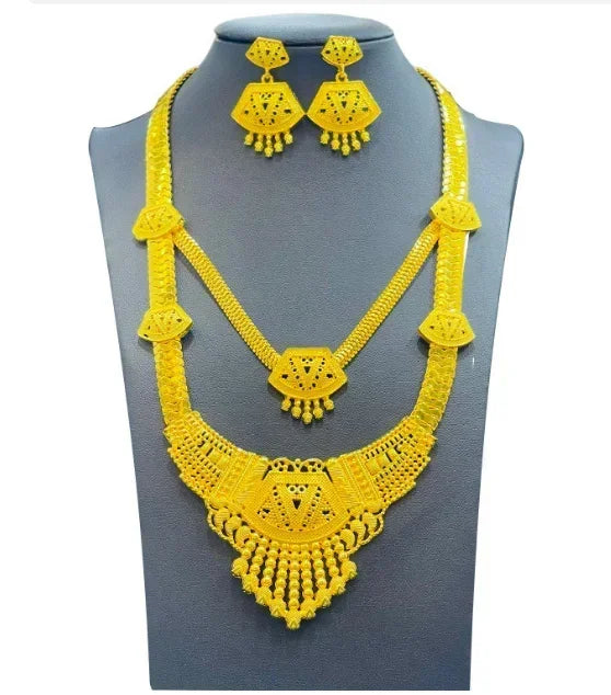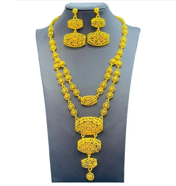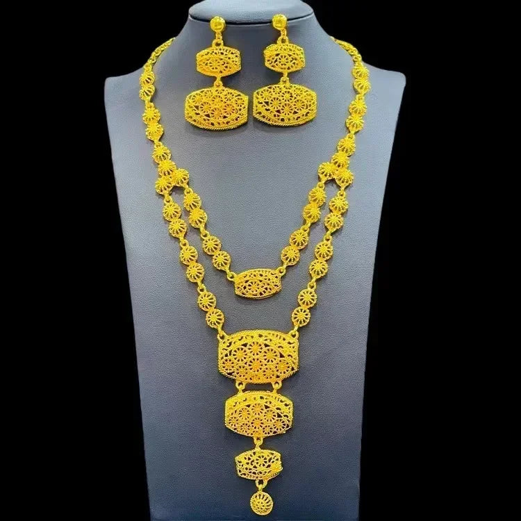 New 24K Alloy Dubai Jewelry Set For Women Necklace Earrings Indian Thailand Bride Wedding Two Piece Set Wholesale Gold Color