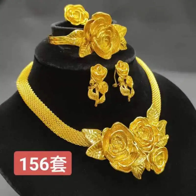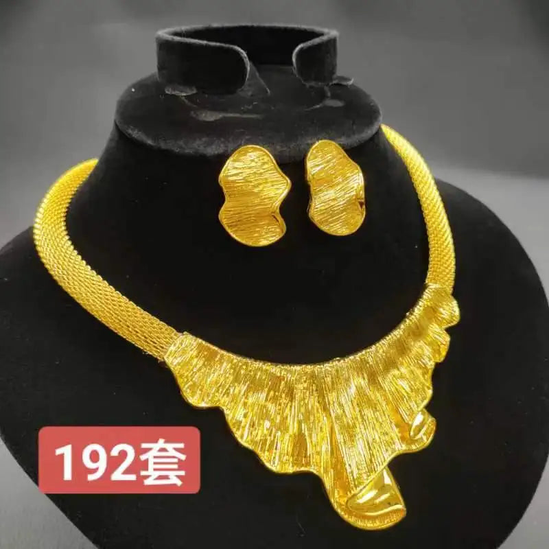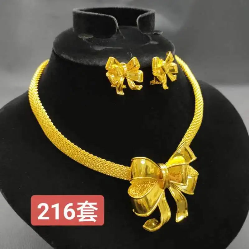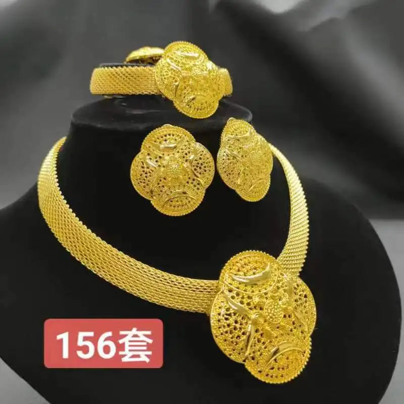 Dubai Necklace Bracelets Pendant Set For Women Nigerian Jewelry Set Bridal Wedding Gifts Indian Gold Color Necklaces