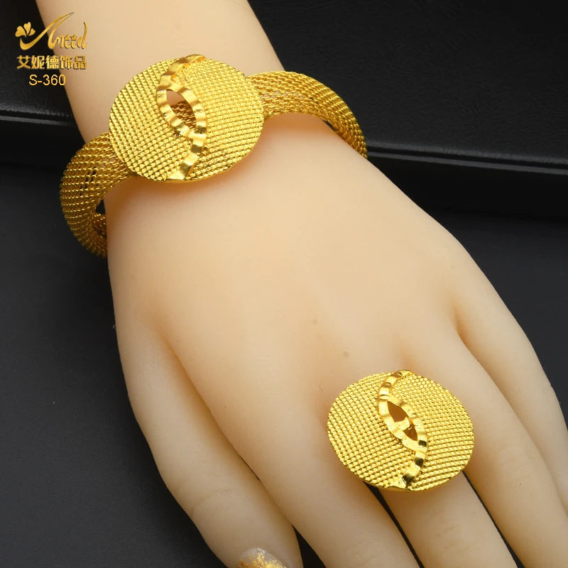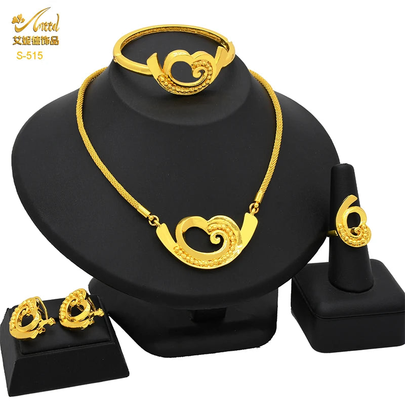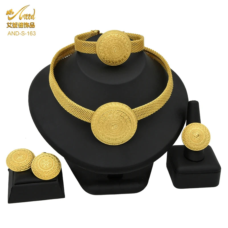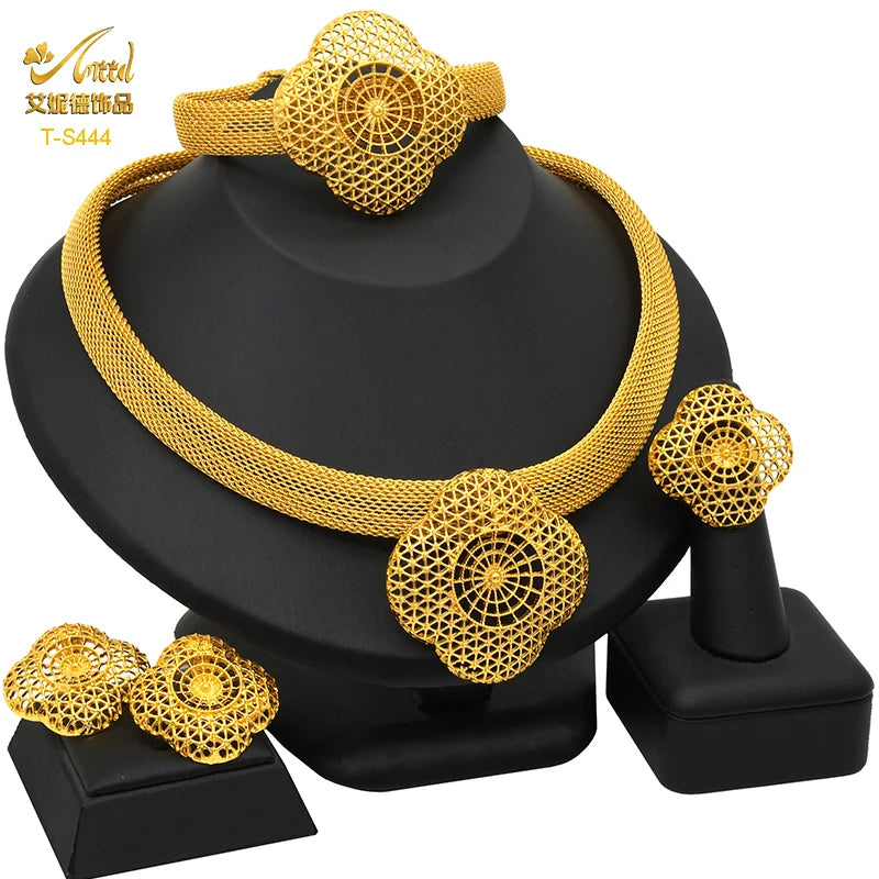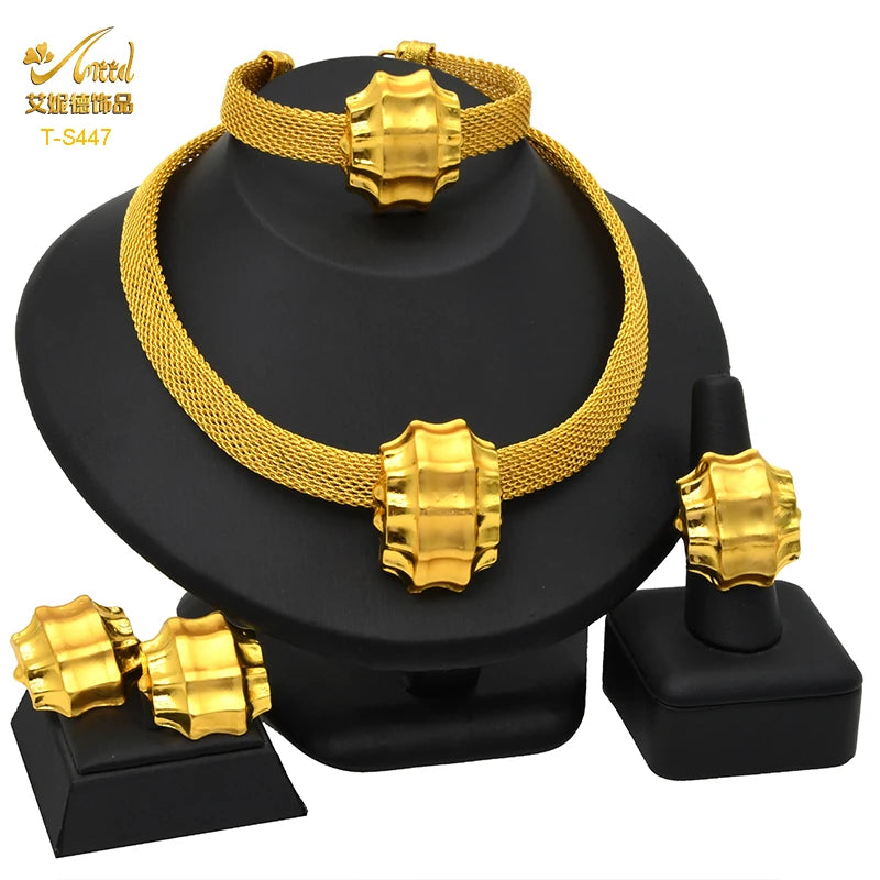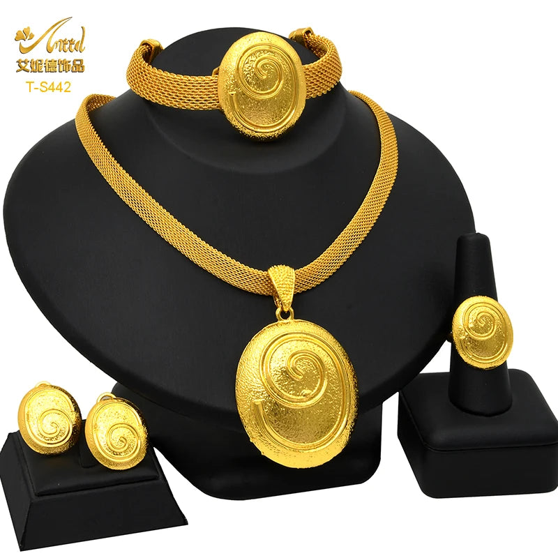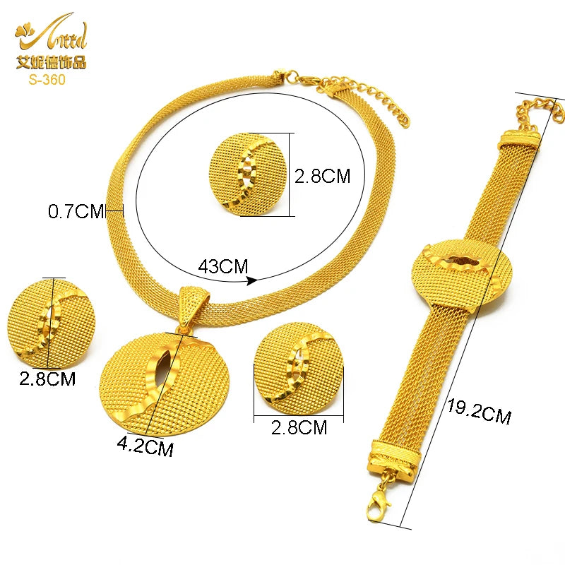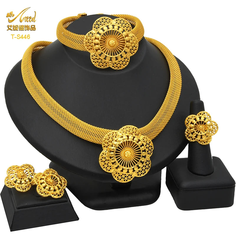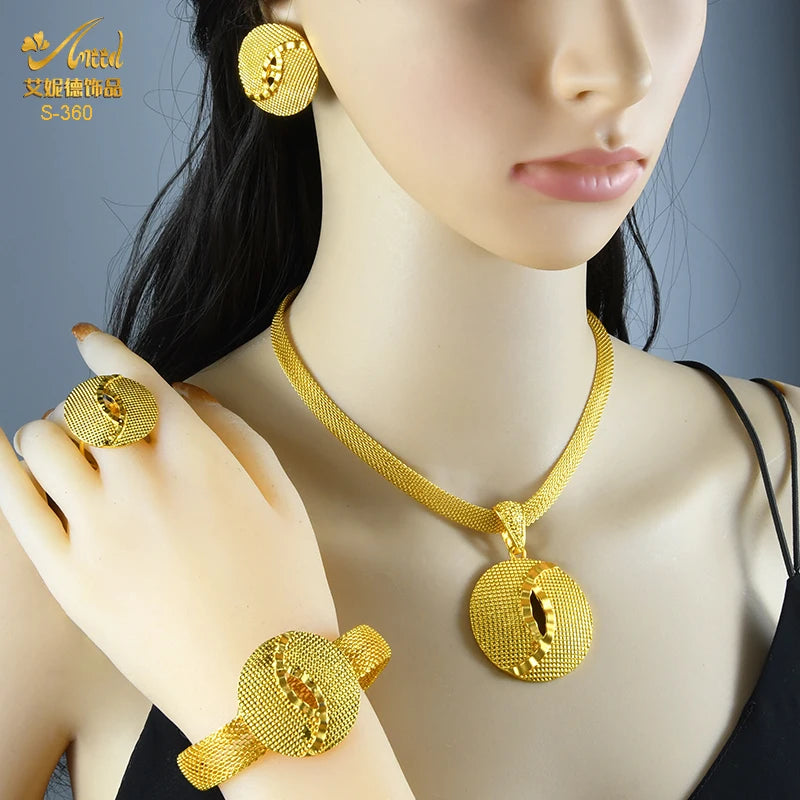 ANIID Dubai Necklace Bracelets Pendant Set For Women Nigerian Jewelry Set Bridal Wedding Gifts Indian Gold Color Necklaces