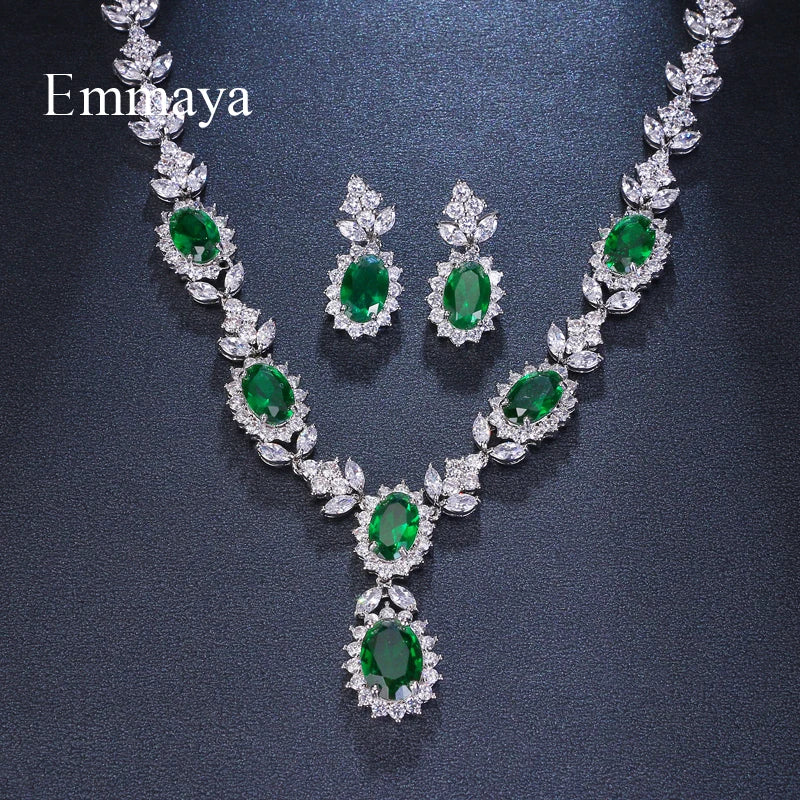 Emmaya Brand Fashion Luxury Cubic Zirconia Bridal Jewelry Sets Green Oval Crystal Rhinestone Party Wedding Jewelry Necklace Sets