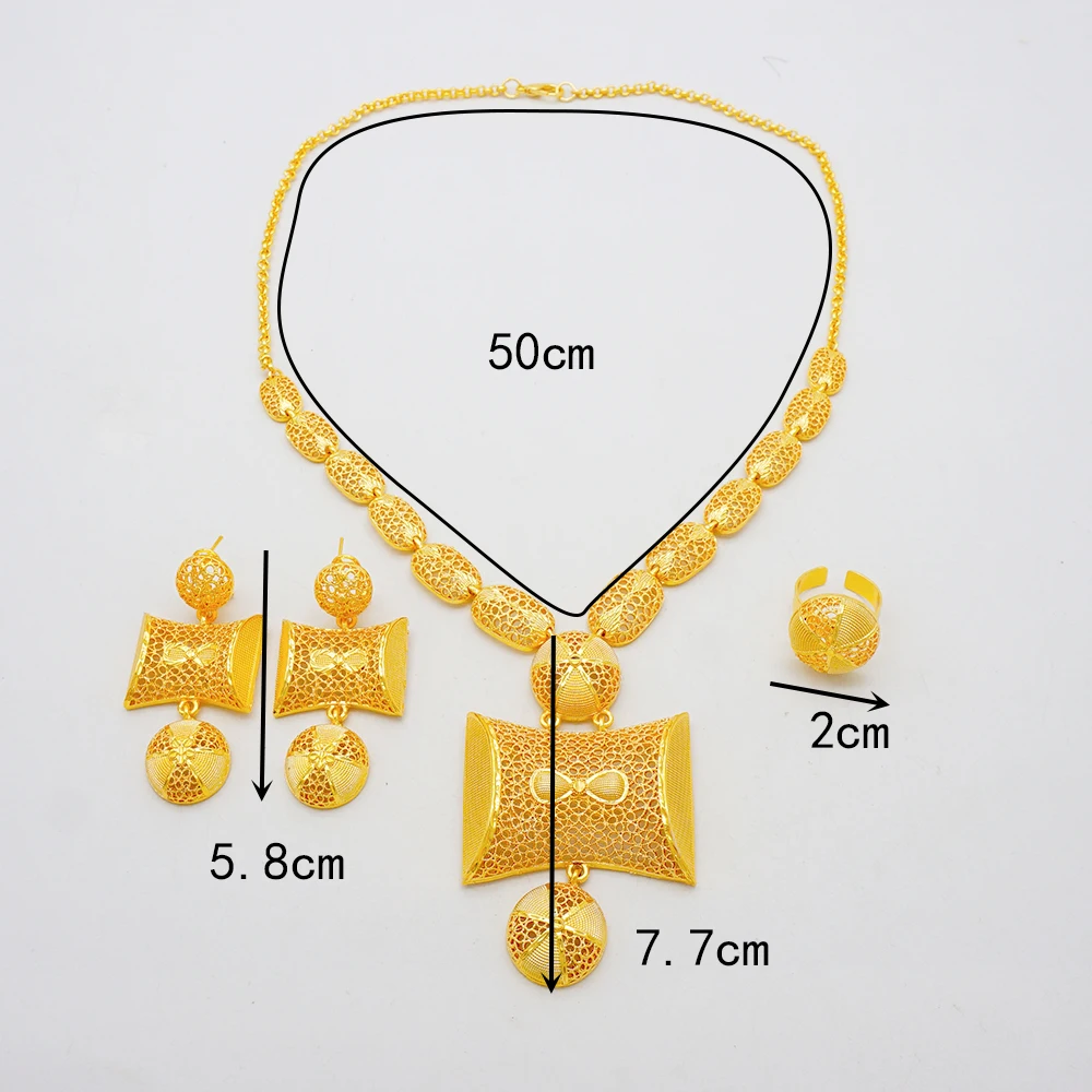 Ethiopia Africa Luxury Gold Color Latest Jewelry Set Wedding Party Exquisite Women Wearing Earrings and Pendant Set
