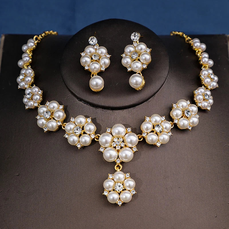 Fashion Women Bridal Elegant Wedding 3pcs/set Party Pearl Rhinestone Angle Necklace Earrings Jewelry Set Banquet Gift
