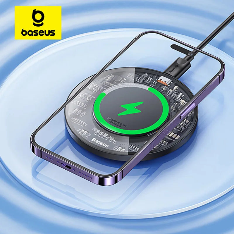 Fast Wireless Charger For iPhone 16 15 For Air pods Visible Qi Wireless Quick Charging Pad