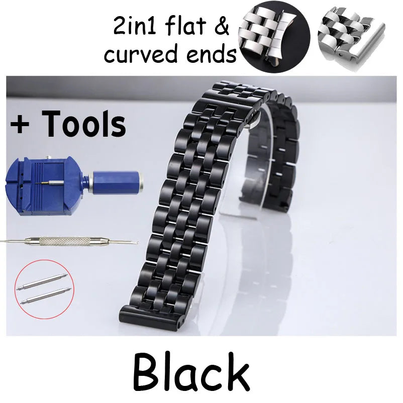 Flat and Curved End Watch Band 18 19 20 21 22mm 24mm 26mm Stainless Steel Watch Strap Butterfly Clasp Replacement Wrist Bracelet