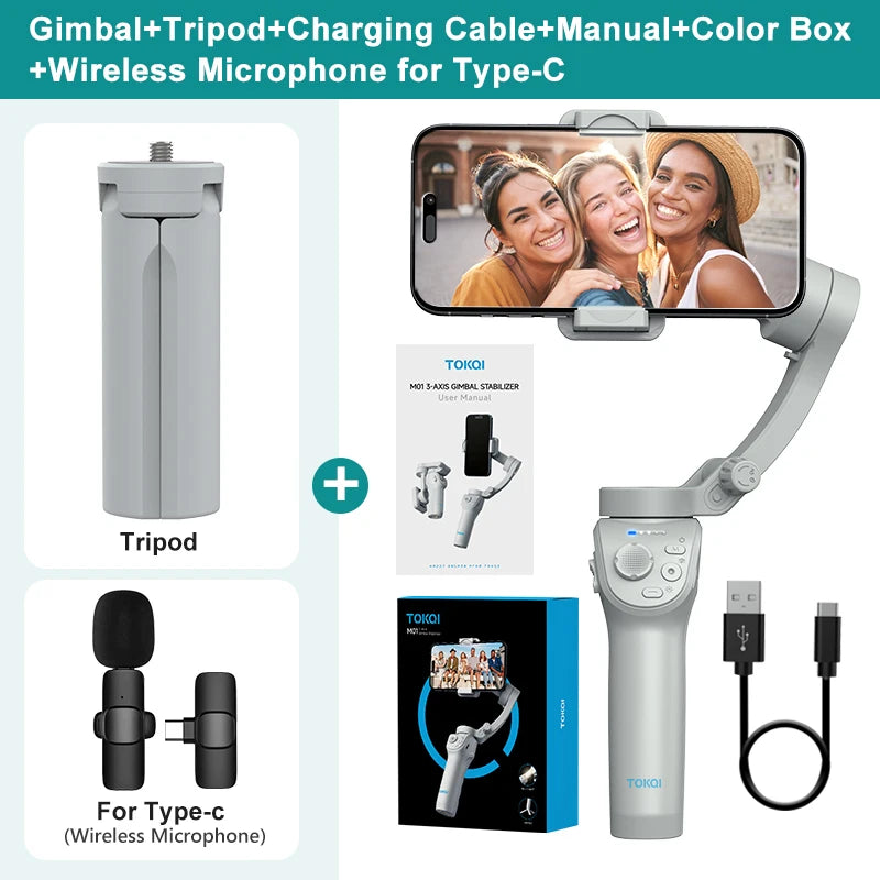 TOKQI M01 Handheld 3-Axis Gimbal Phone Holder Anti Shake Video Record Stabilizer for Xiaomi iPhone Cellphone Smartphone