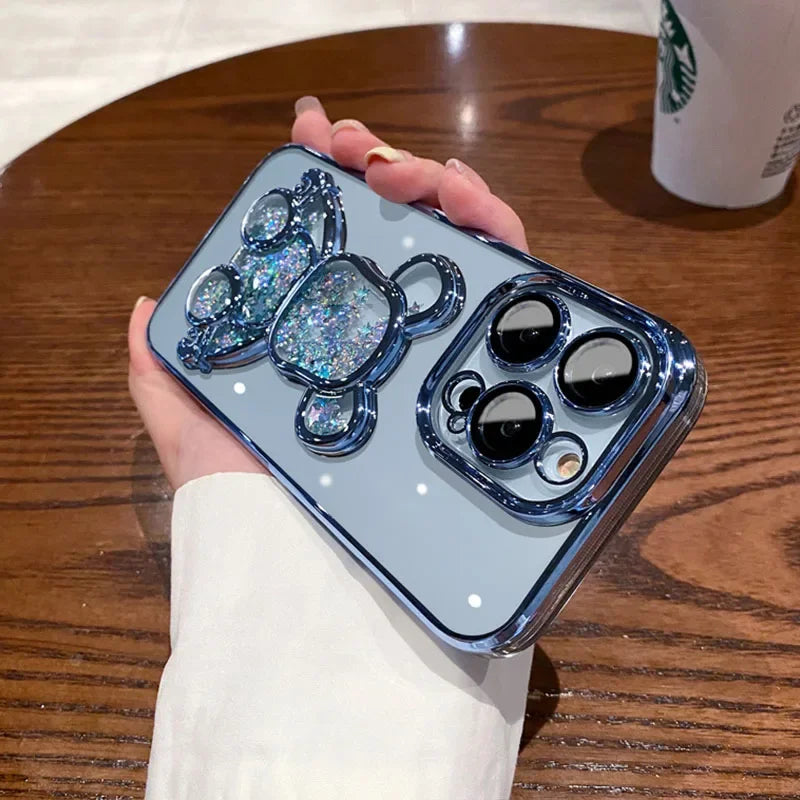 Glitter Case for iPhone 14 16 Pro Max 13 12 11 15 X Xr Xs 8 7 Plus Bear Transparent Camera Protector Cover