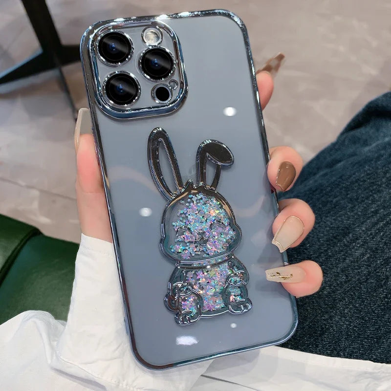 Cute Rabbit Quicksand Glitter Case for iPhone 14 16 Pro Max 13 12 11 15 X Xr Xs 8 7 Plus Bear Transparent Camera Protector Cover