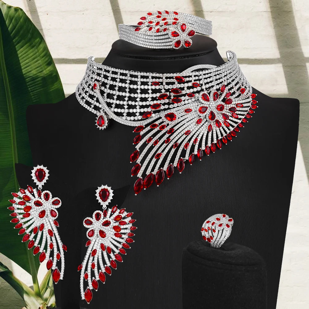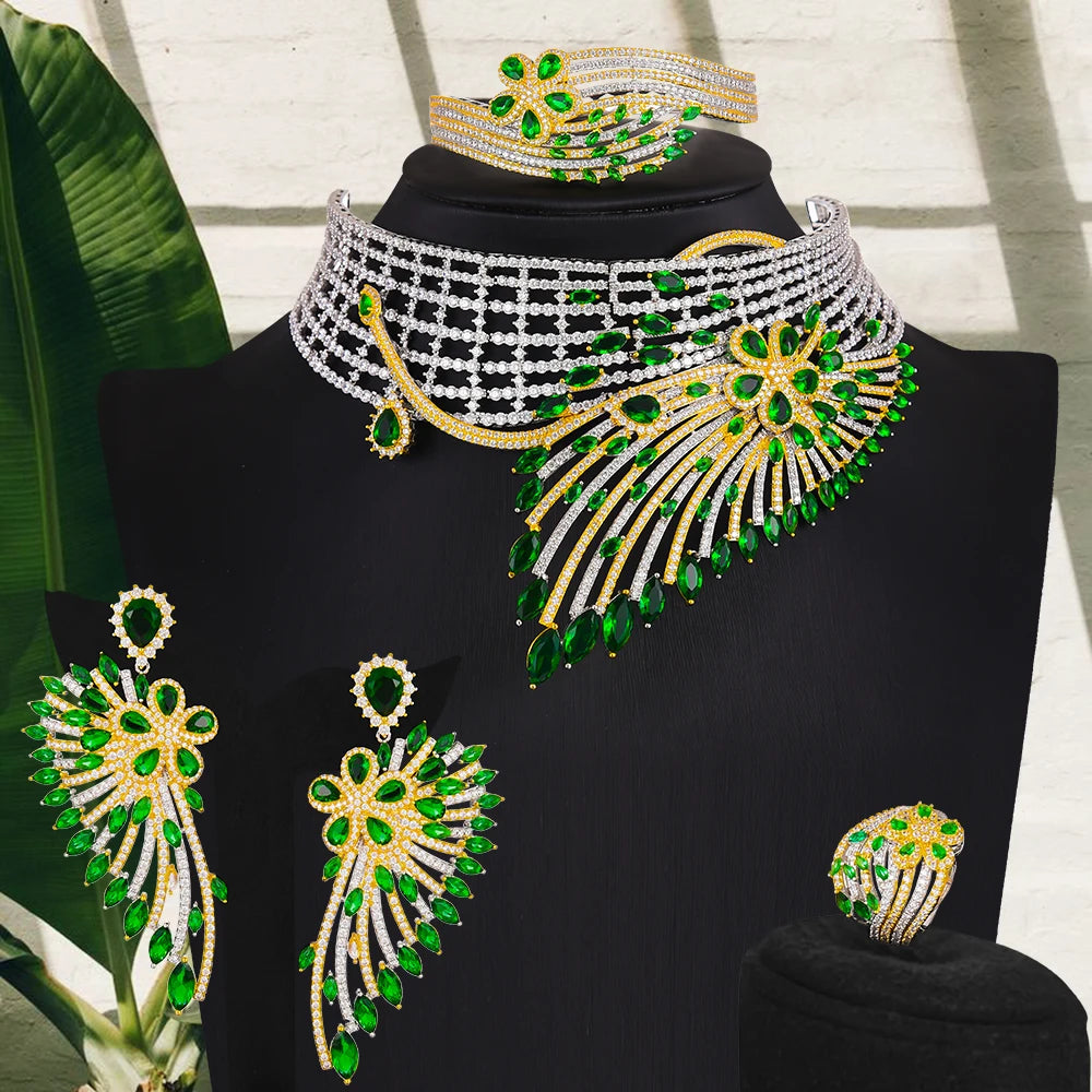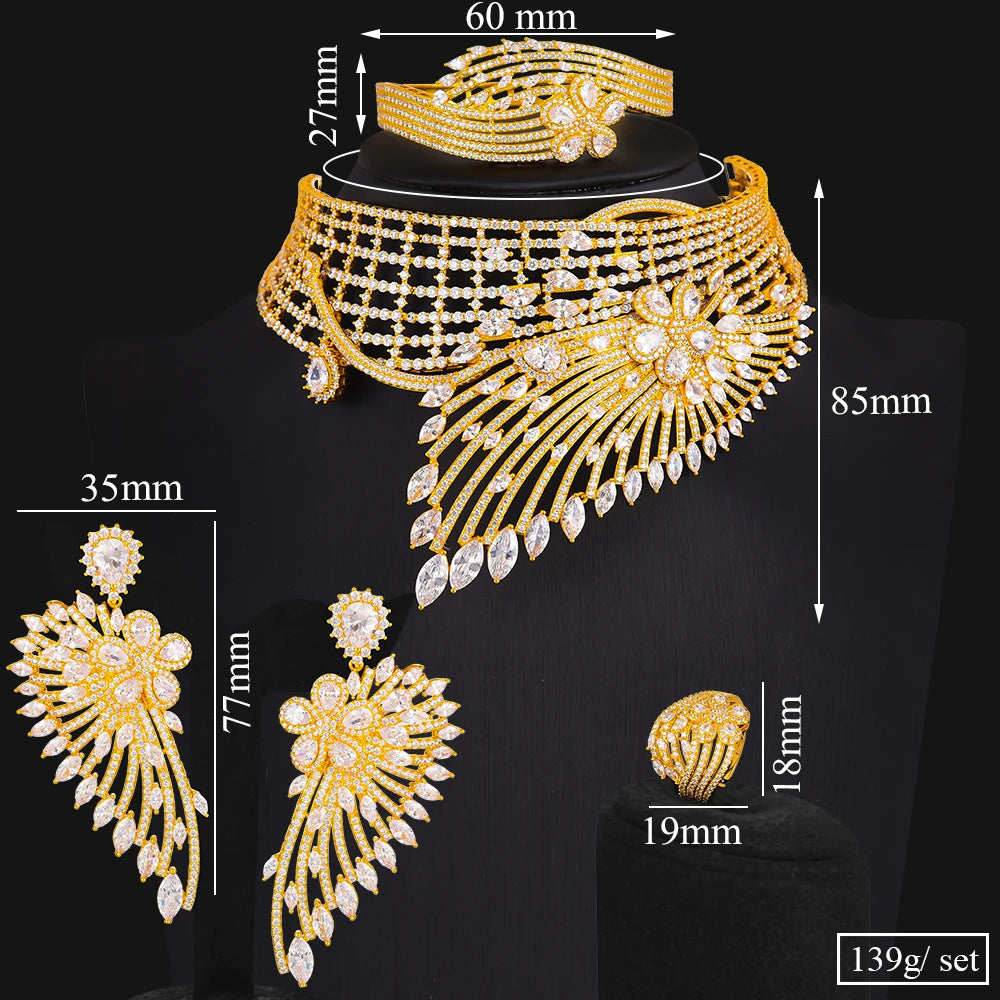 GODKI Luxury African Feather Chokers Jewelry Sets Wedding Cubic Zirconia CZ Dubai Bridal Party Set