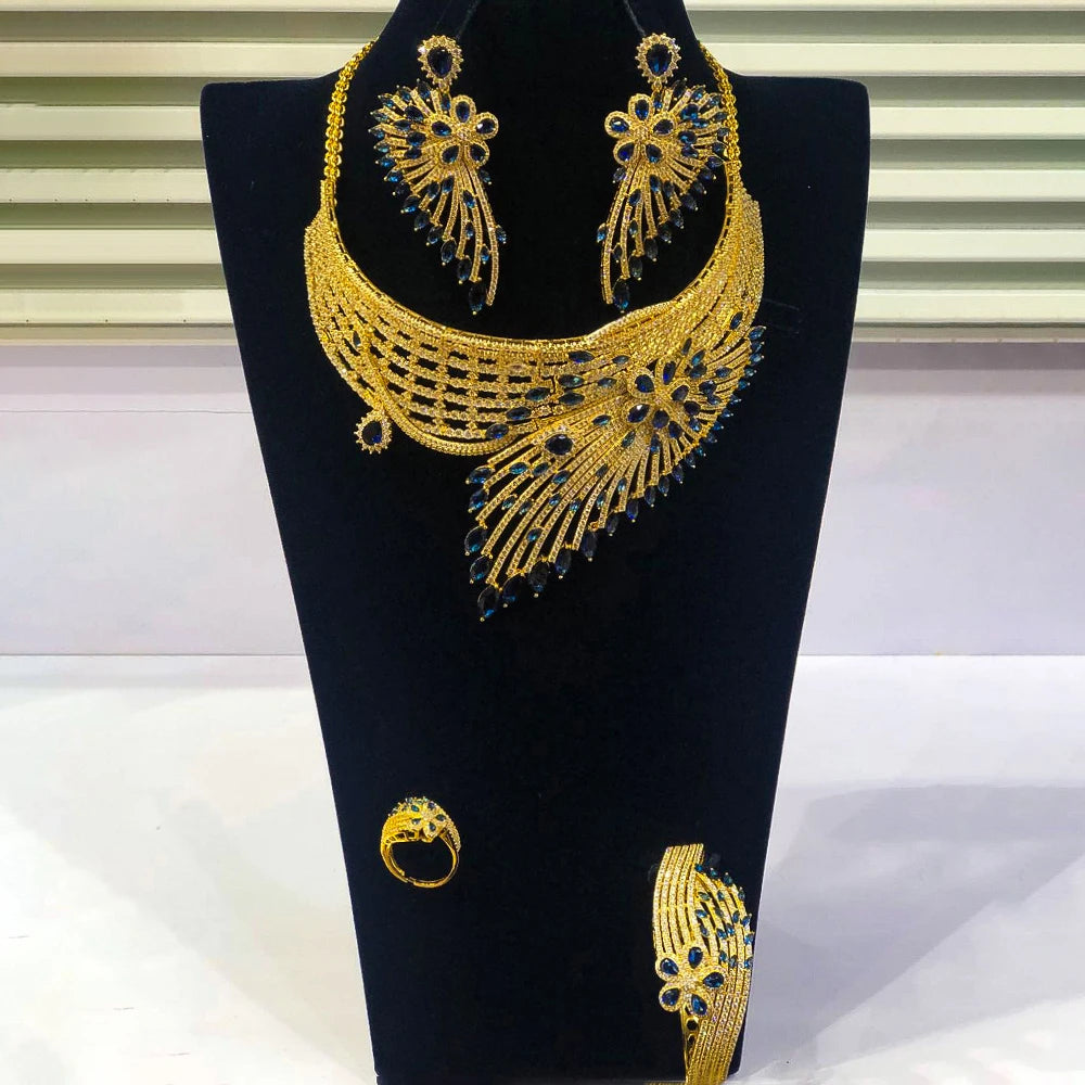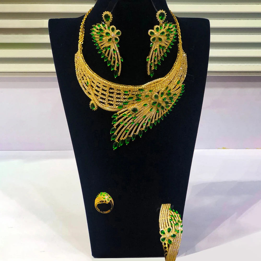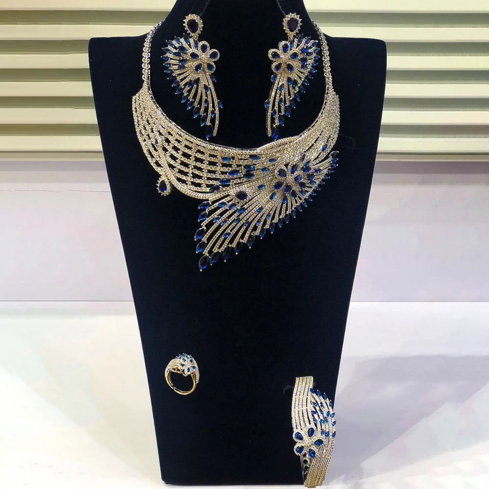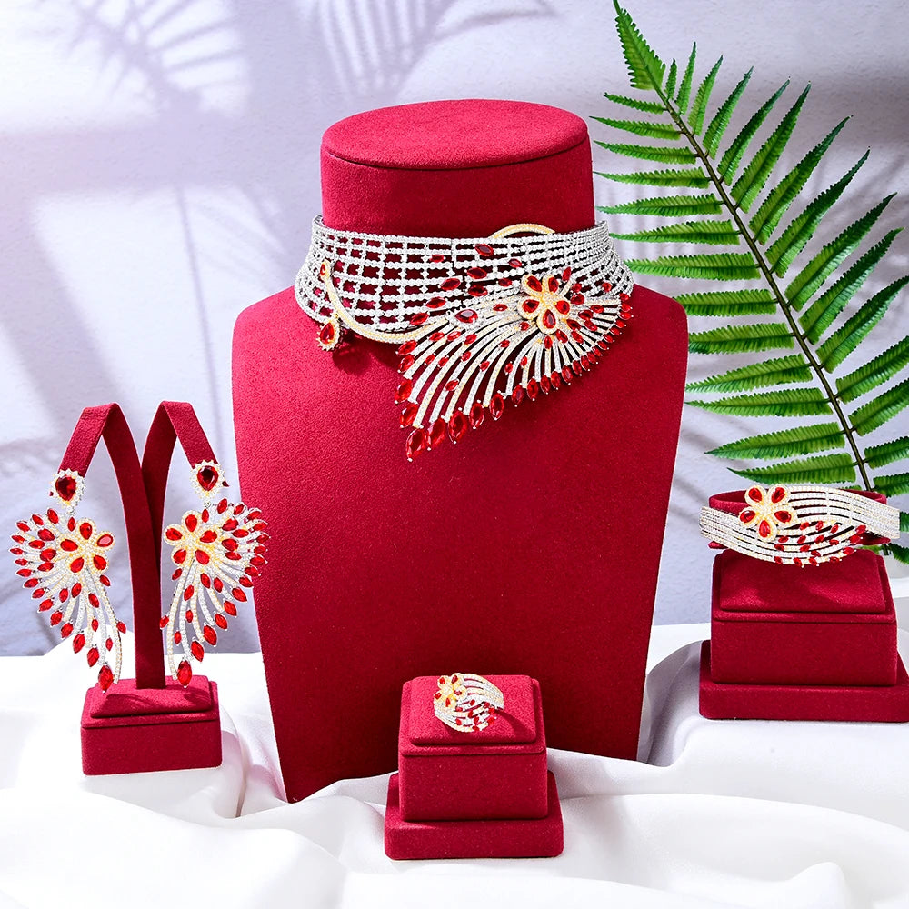 GODKI Luxury African Feather Chokers Jewelry Sets Wedding Cubic Zirconia CZ Dubai Bridal Party Set