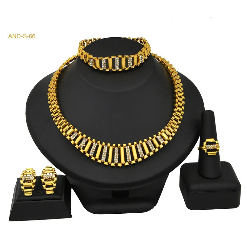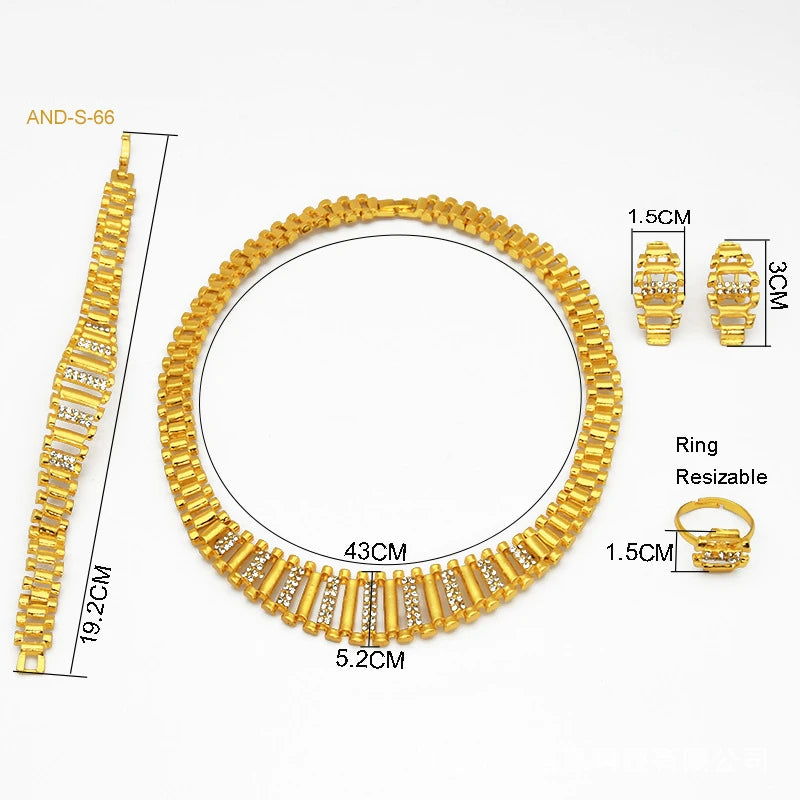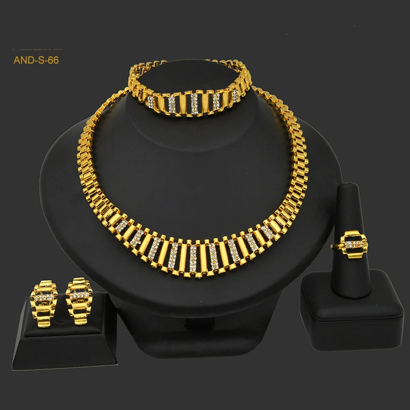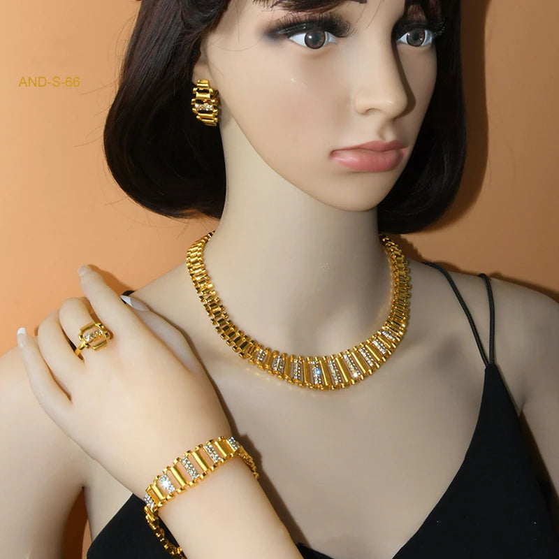 Gold Dubai Jewelry Set Jewelry Necklace Bracelet Earrings Ring 4Pcs Sets Women Wedding Bridal Jewelry Set Gift Party Wholesale