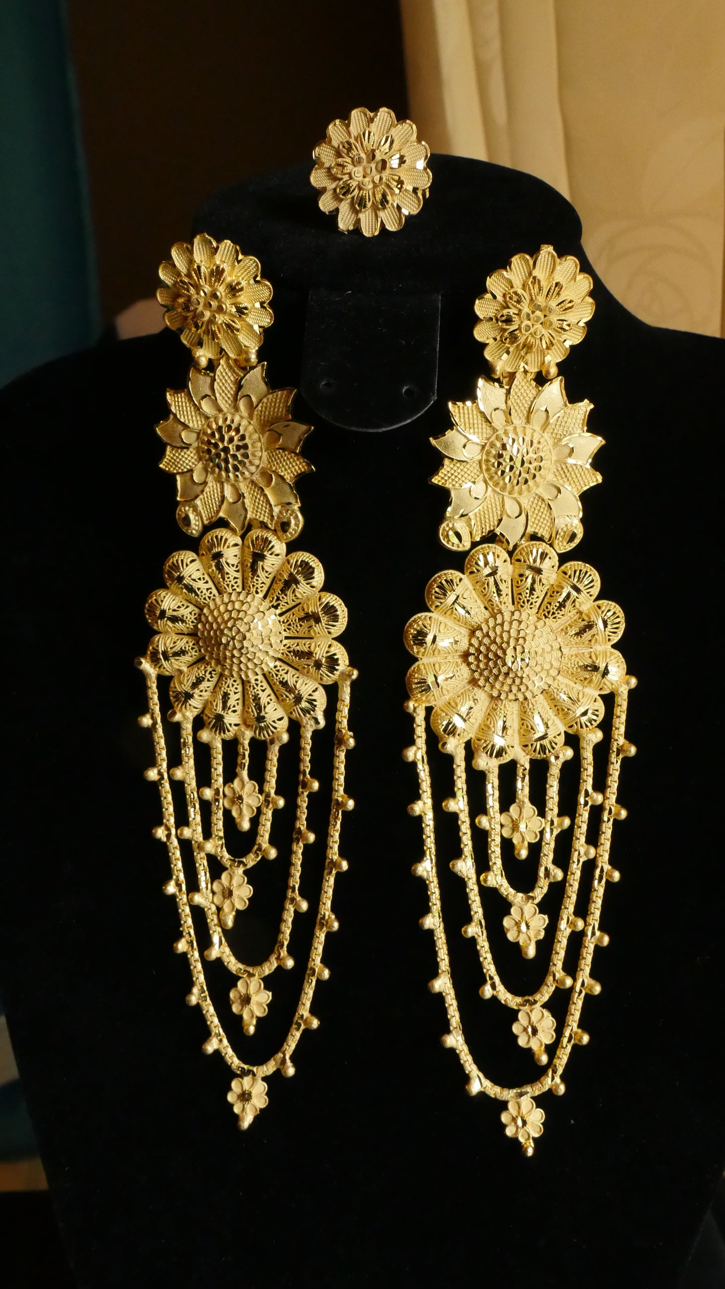 Gold Plated Earrings with Ring, 22ct Heavy Gold forming Jewellery,