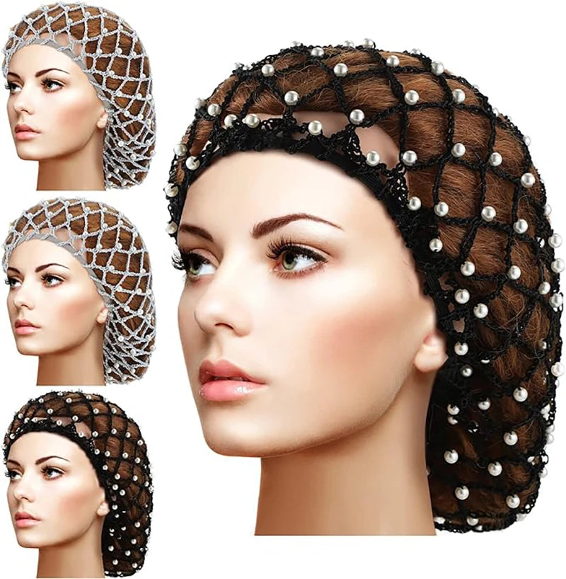 Hand Crochet For Women Pearl Hair Net, Droopy Hair Conditioner Net Head Cover Beauty And Hair Care Cap