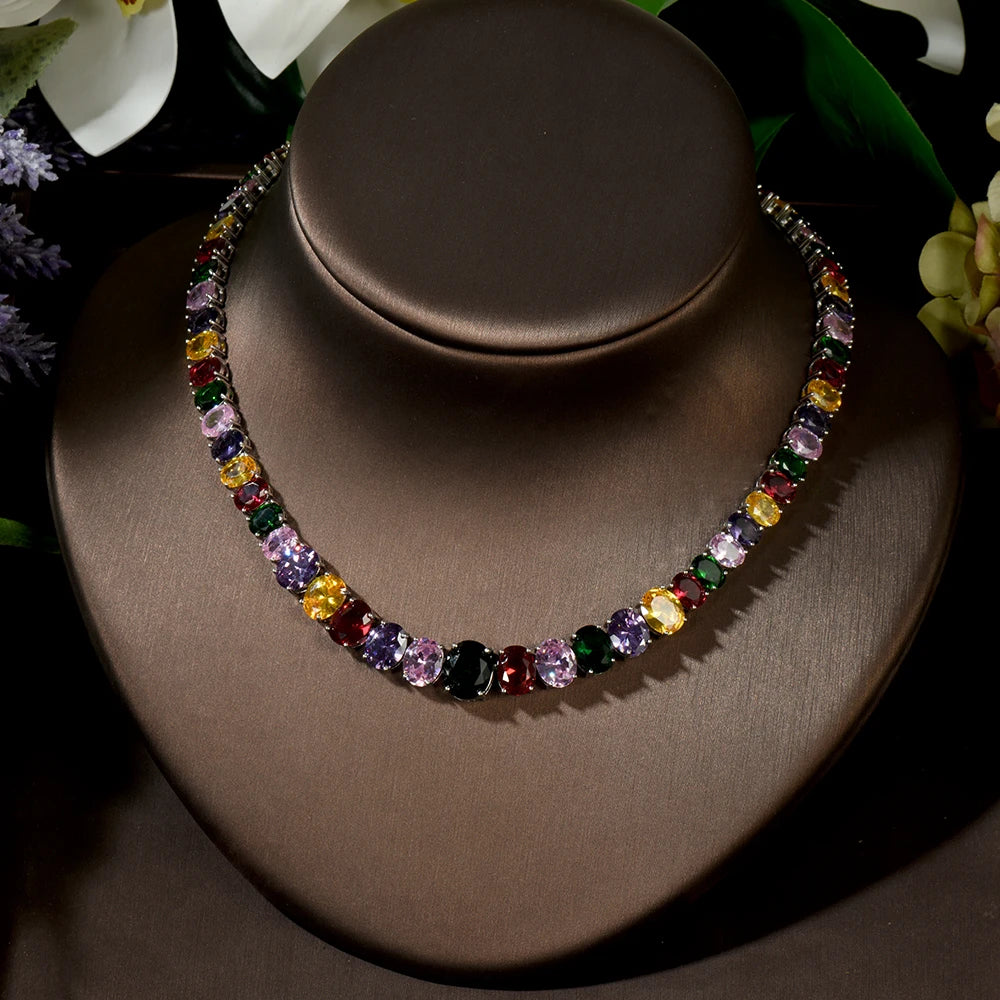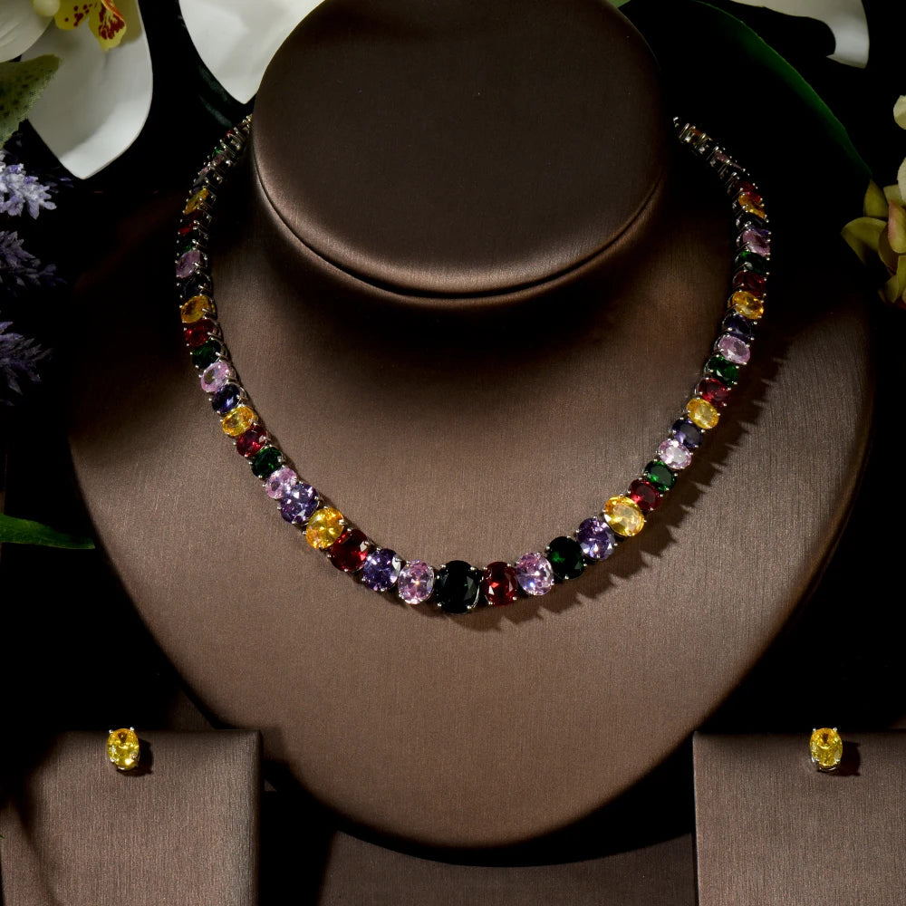 HIBRIDE Oval Round Cubic Zirconia Necklace Earrings For Women Elegant Multicolor Crystal Female Dinner Dress Jewelry Set N-1446