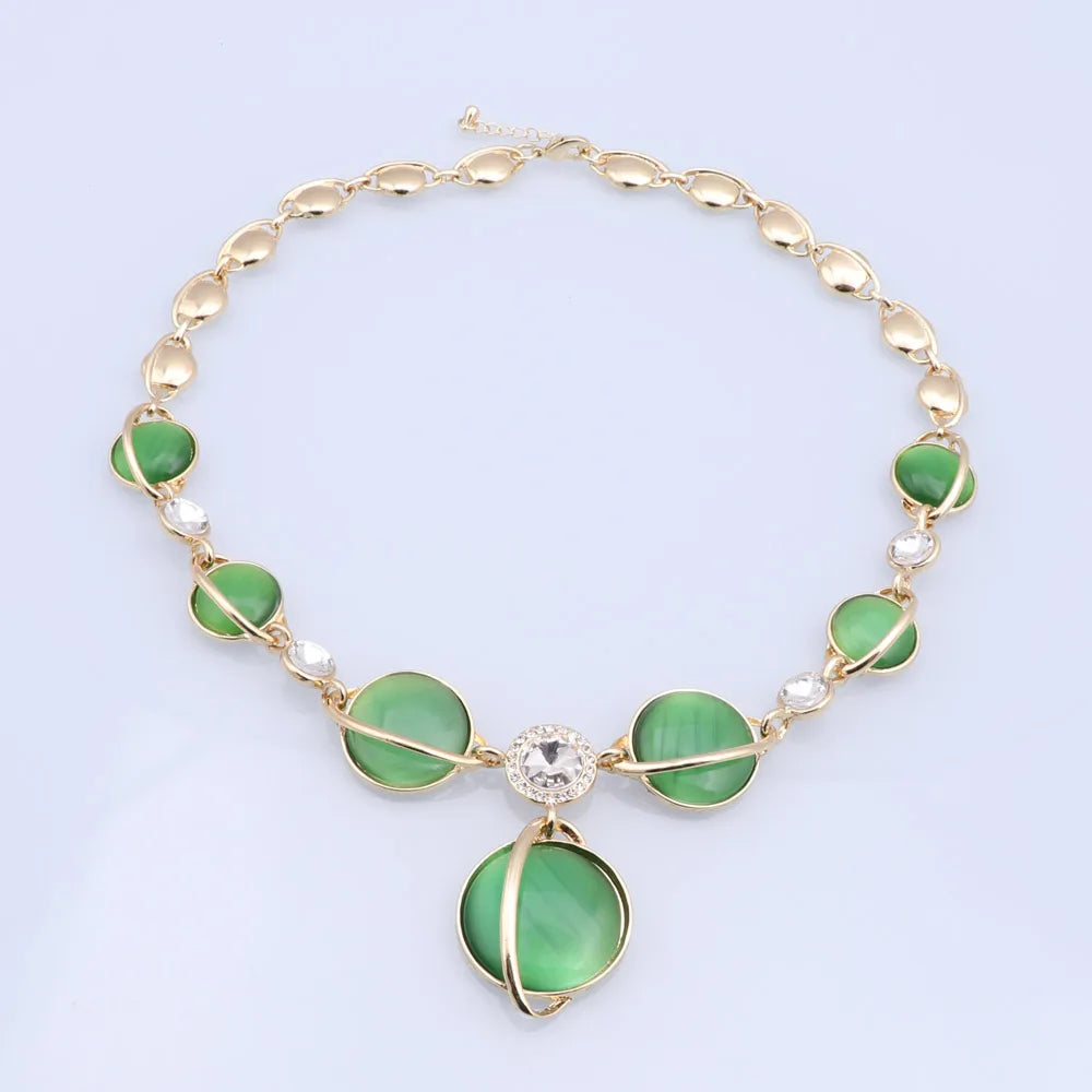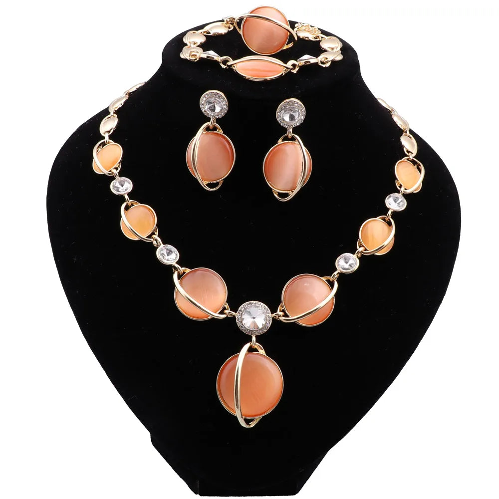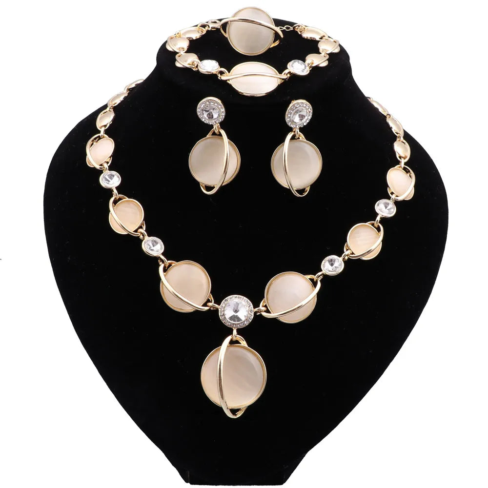 Italian Gold Plated Opal Jewelry Set Necklace Ring Earrings Bracelet For Women Wedding Party Accessories