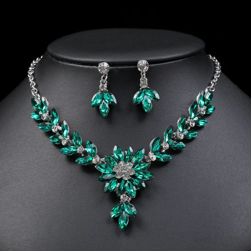KMVEXO 2022 Summer Vintage Luxury Flower Crystal Wedding Earrings Necklace Set For Women Bridal Jewelry Sets Party Accessories
