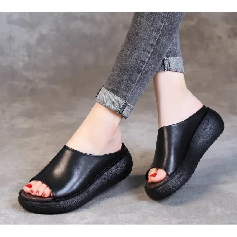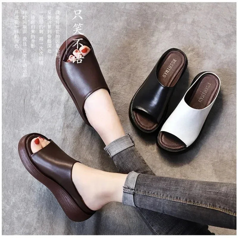 Summer Leather Shoes: Platform Slippers