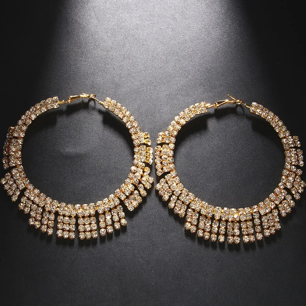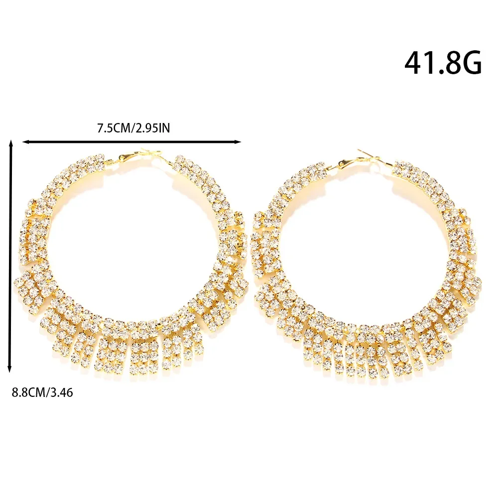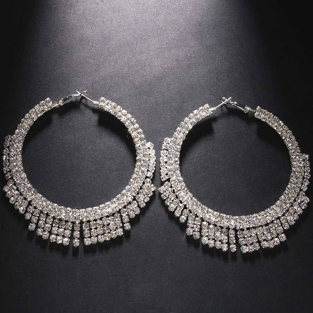 Large Hoop Earrings Exaggerate Shiny Crystal Big Circle Earrings Party Jewellery