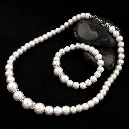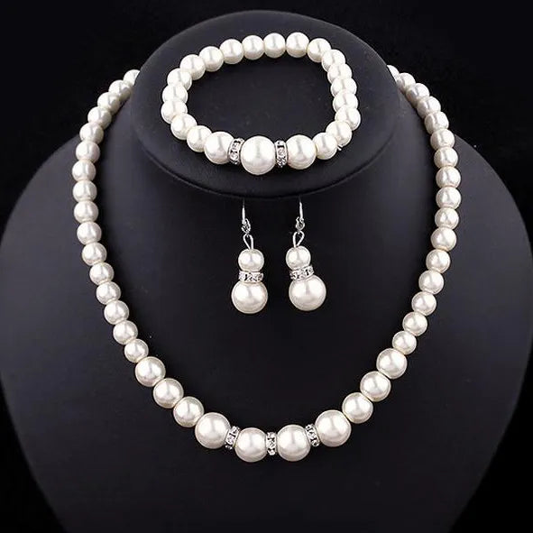 Luxury Crystal Simulated Pearl Necklace Earrings Jewellery Sets