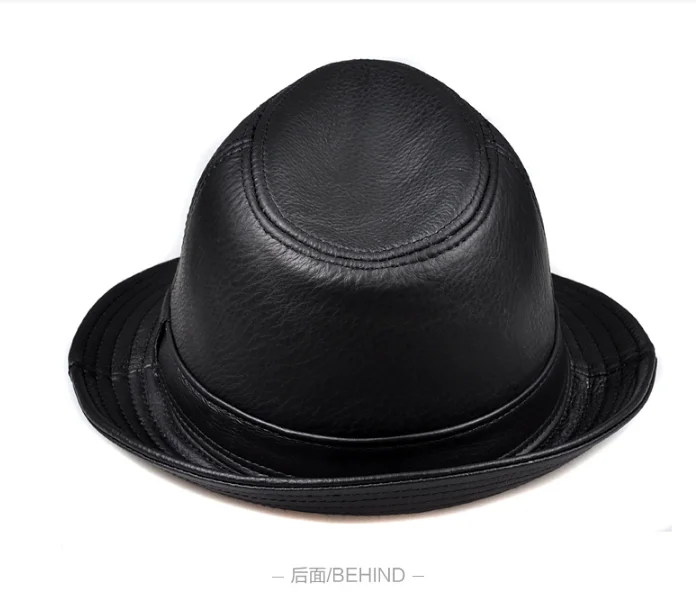 Man High Quality Genuine Leather Formal Hat Jazz Gentleman Cow Skin Short Black/Brown Top Hat