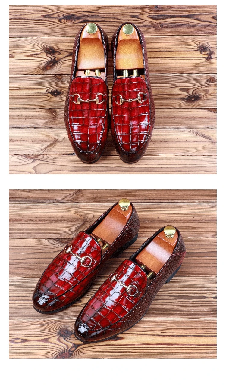 Men's Casual Business Shoes Embossed Leather Mens Classic British Style Horsebit Loafers Moccasins Men Party Wedding Flats