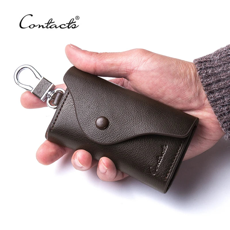 CONTACT'S Men's Genuine Leather Key Wallets Fashion Housekeeper Key Holders Male Keychain Casual Key Case For Men Key Rings
