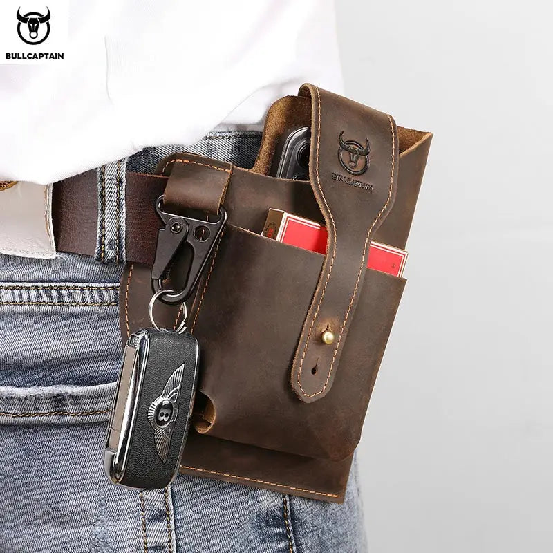 Men's Leather Waist Bag Mobile Phone Carrying Cigarette Case Outdoor Bag